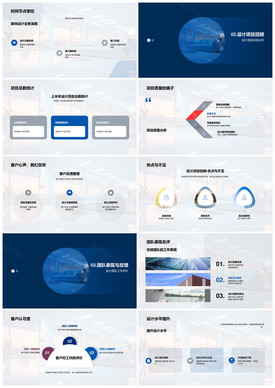 这是一张装饰设计业务流程项目需求反馈团队提升蓝图PPT模板,包含装饰设计、业务流程、项目需求、反馈、团队、提升、蓝图等主题内容,也可用作装饰设计业务流程项目、业务流程项目需求反馈、项目需求反馈团队提升、反馈团队提升蓝图、装饰设计业务流程、业务流程项目需求、项目需求反馈、团队提升蓝图、装饰设计业务、设计业务流程、流程项目需求、需求反馈团队、提升蓝图项目、装饰设计、业务流程等PPT场景使用。 风云办公提供的装饰设计业务流程项目需求反馈团队提升蓝图PPT模板,下载格式为pptx,一共28页,作品中文字及图均可以修改和编辑,图片更改请在作品中右键图片并更换,文字修改请直接点击文字进行修改。