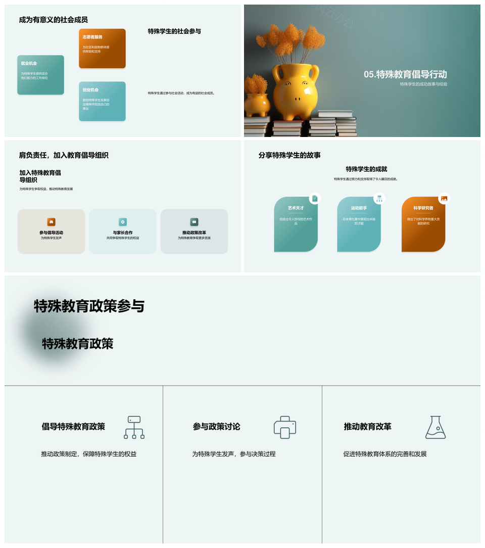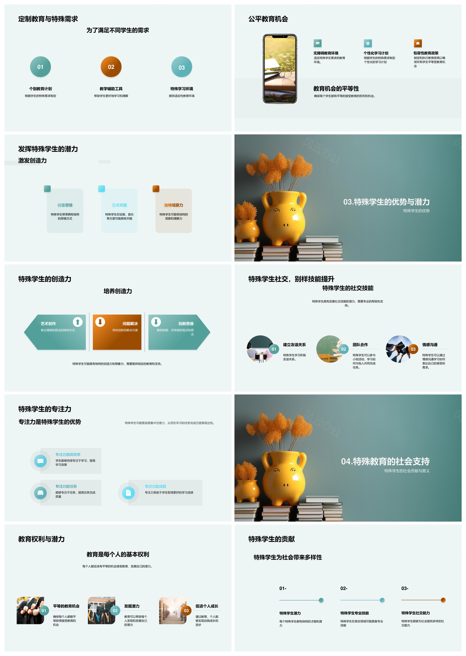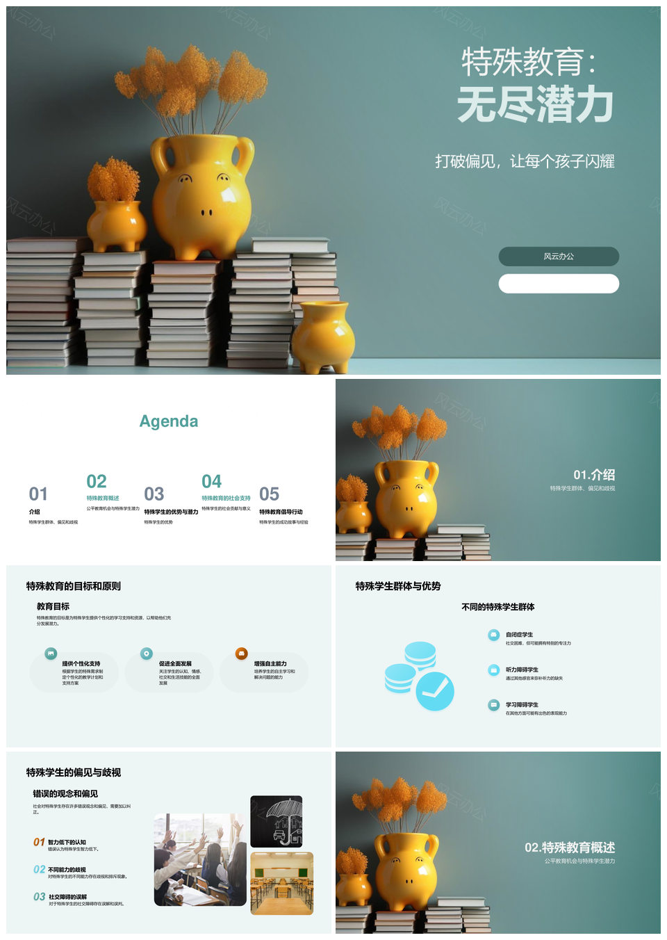 风云办公提供的超越界限共倡未来特殊教育多元群体PPT模板,下载格式为pptx,一共23页,作品中文字及图均可以修改和编辑,图片更改请在作品中右键图片并更换,文字修改请直接点击文字进行修改。