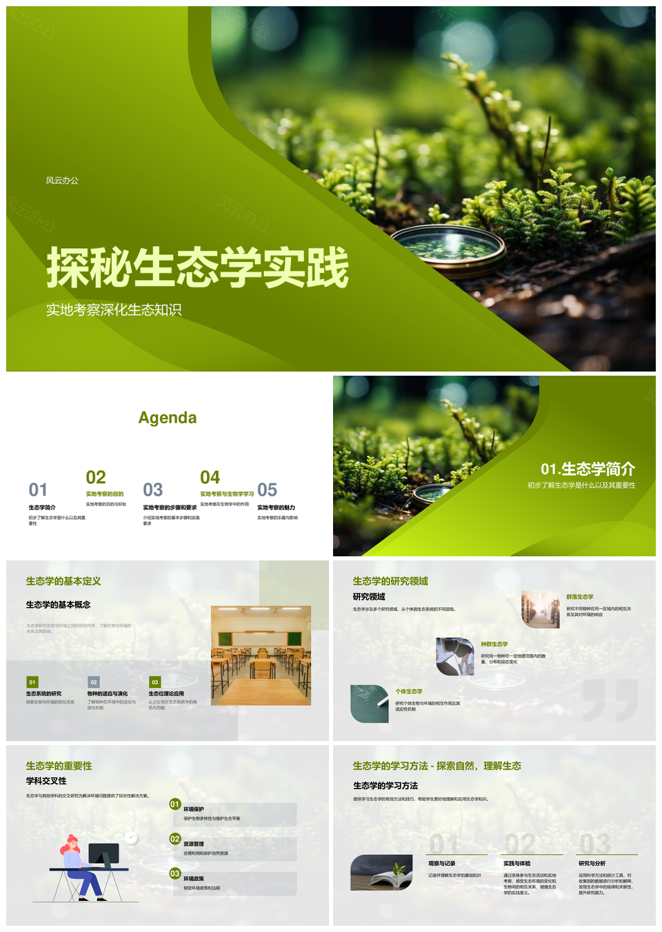 风云办公提供的生态学实践森林考察与数据分析PPT模板,下载格式为pptx,一共28页,作品中文字及图均可以修改和编辑,图片更改请在作品中右键图片并更换,文字修改请直接点击文字进行修改。