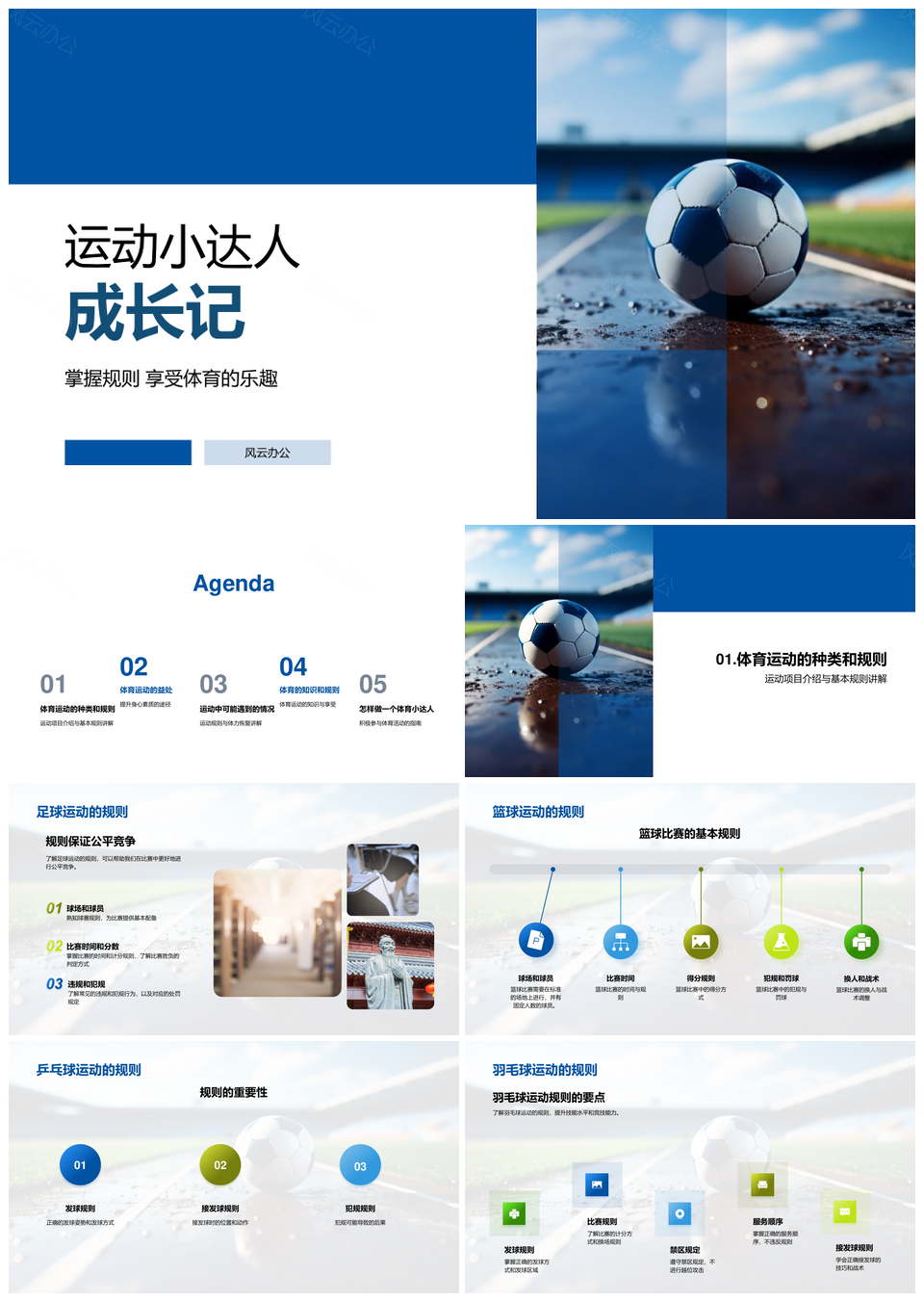 这是一张运动小达人体育知识规则成长足球协作强体PPT模板,包含运动小达人、体育、知识、规则、成长、足球、协作、强体等主题内容,也可用作运动小达人体育知识规则成长、运动小达人体育知识规则、体育知识规则成长足球、规则成长足球协作强体、运动小达人体育知识、体育知识规则成长、知识规则成长足球、成长足球协作强体、运动小达人足球协作、体育知识规则足球、规则足球协作强体、运动小达人体育、体育知识规则、足球协作强体、运动小达人等PPT场景使用。 风云办公提供的运动小达人体育知识规则成长足球协作强体PPT模板,下载格式为pptx,一共33页,作品中文字及图均可以修改和编辑,图片更改请在作品中右键图片并更换,文字修改请直接点击文字进行修改。