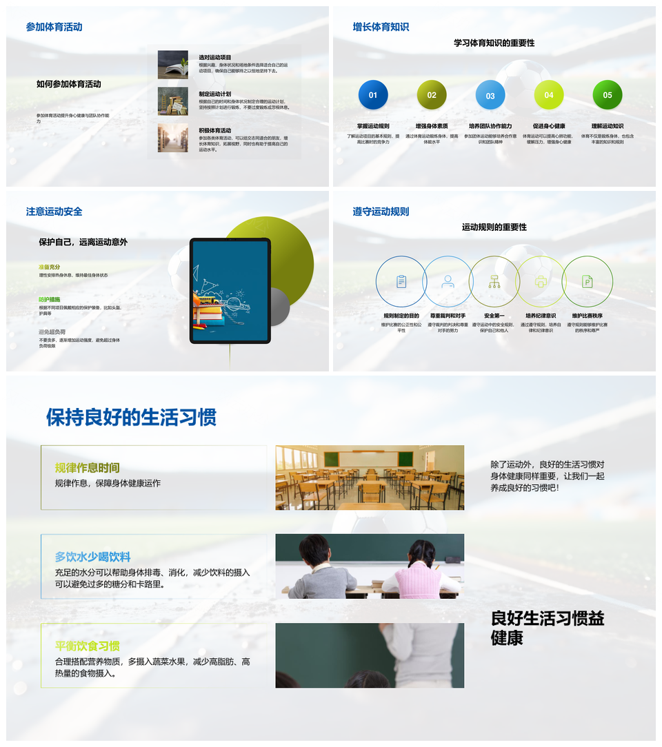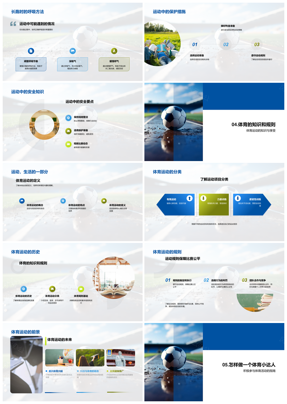 五年级体育启蒙课程运动规则健康效益足球篮球跑步PPT模板