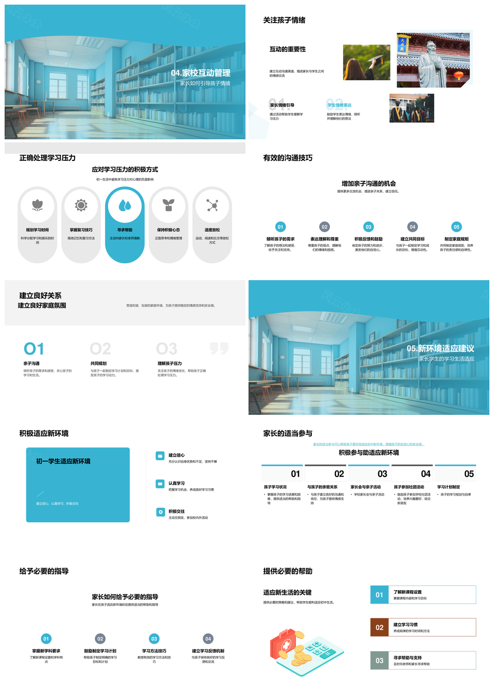 风云办公提供的初中新生学业规划与校园适应家长指南PPT模板,下载格式为pptx,一共28页,作品中文字及图均可以修改和编辑,图片更改请在作品中右键图片并更换,文字修改请直接点击文字进行修改。