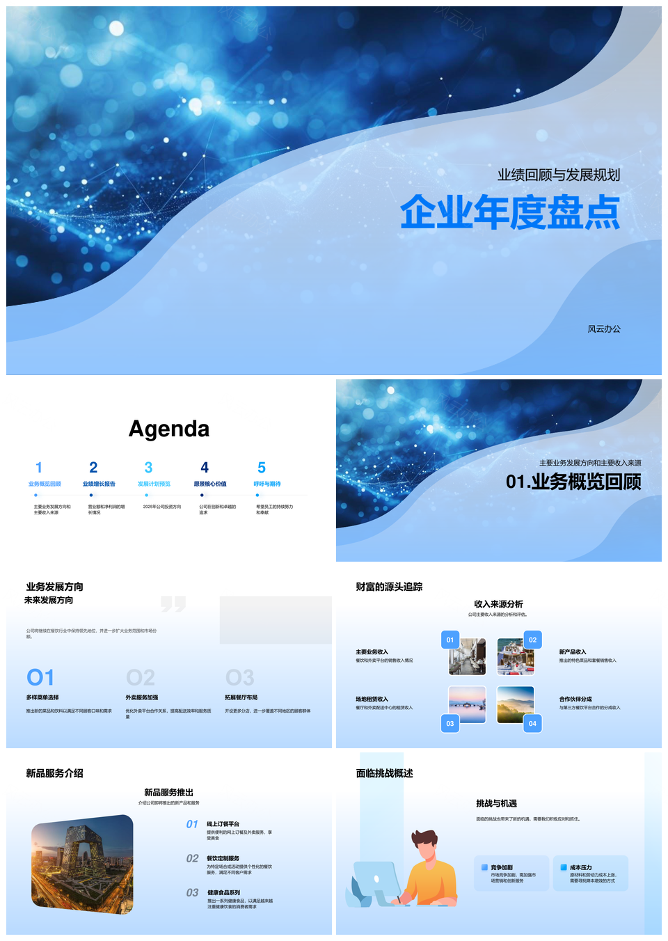 这是一张2025餐饮企业年度盘点业务发展收入来源新品服务PPT模板,包含2025、餐饮企业、年度盘点、业务发展、收入、来源、新品、服务等主题内容,也可用作2025餐饮企业年度盘点业务发展、餐饮企业年度盘点业务发展收入来源、年度盘点业务发展收入来源新品服务、2025餐饮企业年度盘点、餐饮企业年度盘点业务发展、年度盘点业务发展收入来源、业务发展收入来源新品服务、餐饮企业业务发展收入来源、年度盘点收入来源新品服务、2025餐饮企业业务发展、2025年度盘点业务发展、餐饮企业年度盘点、年度盘点业务发展、业务发展收入来源、收入来源新品服务等PPT场景使用。 风云办公提供的2025餐饮企业年度盘点业务发展收入来源新品服务PPT模板,下载格式为pptx,一共28页,作品中文字及图均可以修改和编辑,图片更改请在作品中右键图片并更换,文字修改请直接点击文字进行修改。