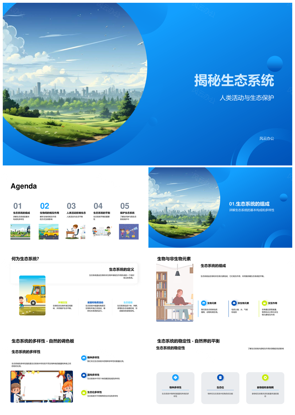 风云办公提供的人类活动与生态保护影响生态系统平衡PPT模板,下载格式为pptx,一共33页,作品中文字及图均可以修改和编辑,图片更改请在作品中右键图片并更换,文字修改请直接点击文字进行修改。