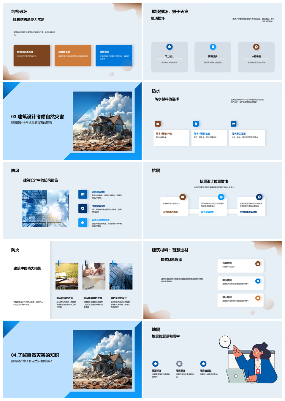 这是一张抗灾建筑设计师防倒塌结构屋顶防水防风设计PPT模板,包含抗灾、建筑设计师、防倒塌、结构、屋顶、防水、防风、设计等主题内容,也可用作抗灾建筑设计防倒塌结构屋顶防水、抗灾建筑设计防倒塌结构、抗灾建筑设计防倒塌、抗灾建筑设计、建筑设计防倒塌结构屋顶、建筑设计防倒塌结构、建筑设计防倒塌、设计防倒塌结构屋顶、设计防倒塌结构、防倒塌结构屋顶防水、防倒塌结构屋顶、结构屋顶防水防风、屋顶防水防风设计、屋顶防水防风、防水防风设计等PPT场景使用。 风云办公提供的抗灾建筑设计师防倒塌结构屋顶防水防风设计PPT模板,下载格式为pptx,一共29页,作品中文字及图均可以修改和编辑,图片更改请在作品中右键图片并更换,文字修改请直接点击文字进行修改。