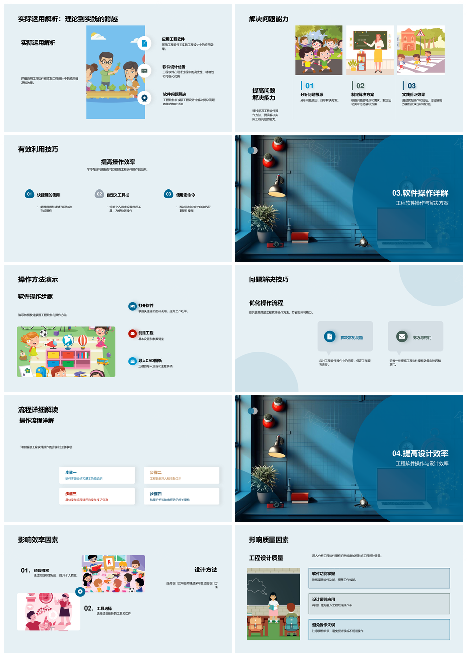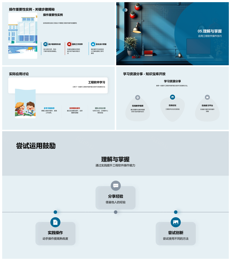 风云办公提供的工程软件高效操作设计原理实战应用PPT模板,下载格式为pptx,一共23页,作品中文字及图均可以修改和编辑,图片更改请在作品中右键图片并更换,文字修改请直接点击文字进行修改。