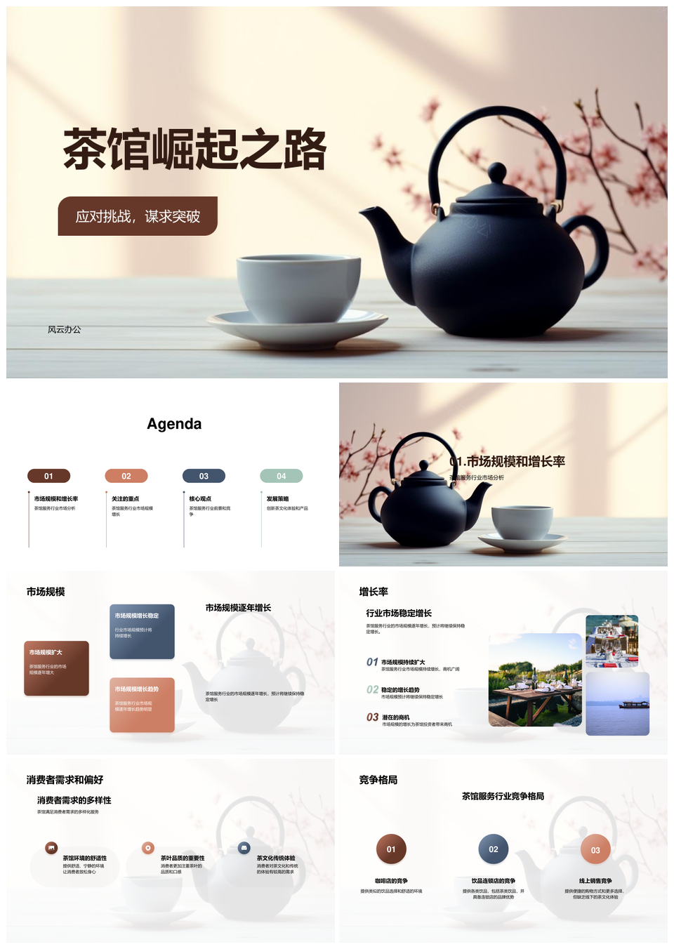 茶馆服务市场规模增长竞争格局与茶文化体验PPT模板推荐