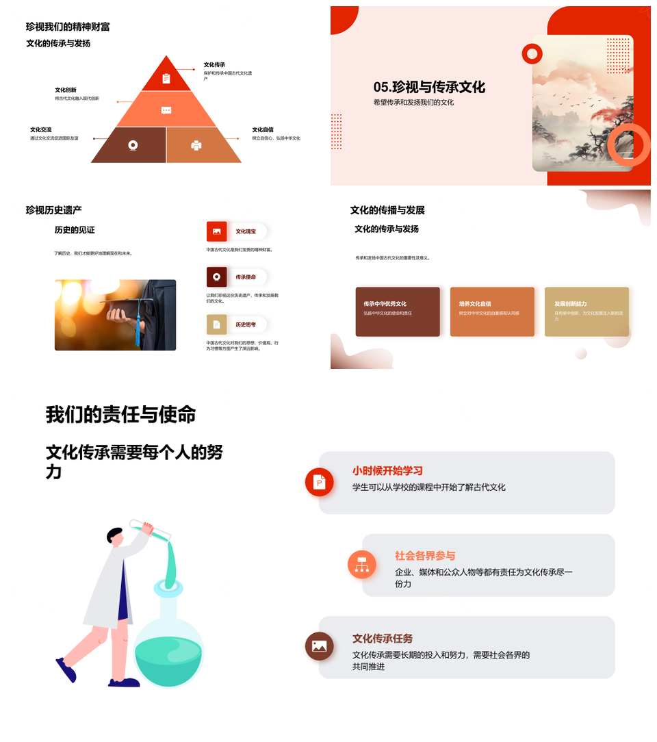 风云办公提供的古代文化讲师团普及四年级卷轴教育PPT模板,下载格式为pptx,一共23页,作品中文字及图均可以修改和编辑,图片更改请在作品中右键图片并更换,文字修改请直接点击文字进行修改。