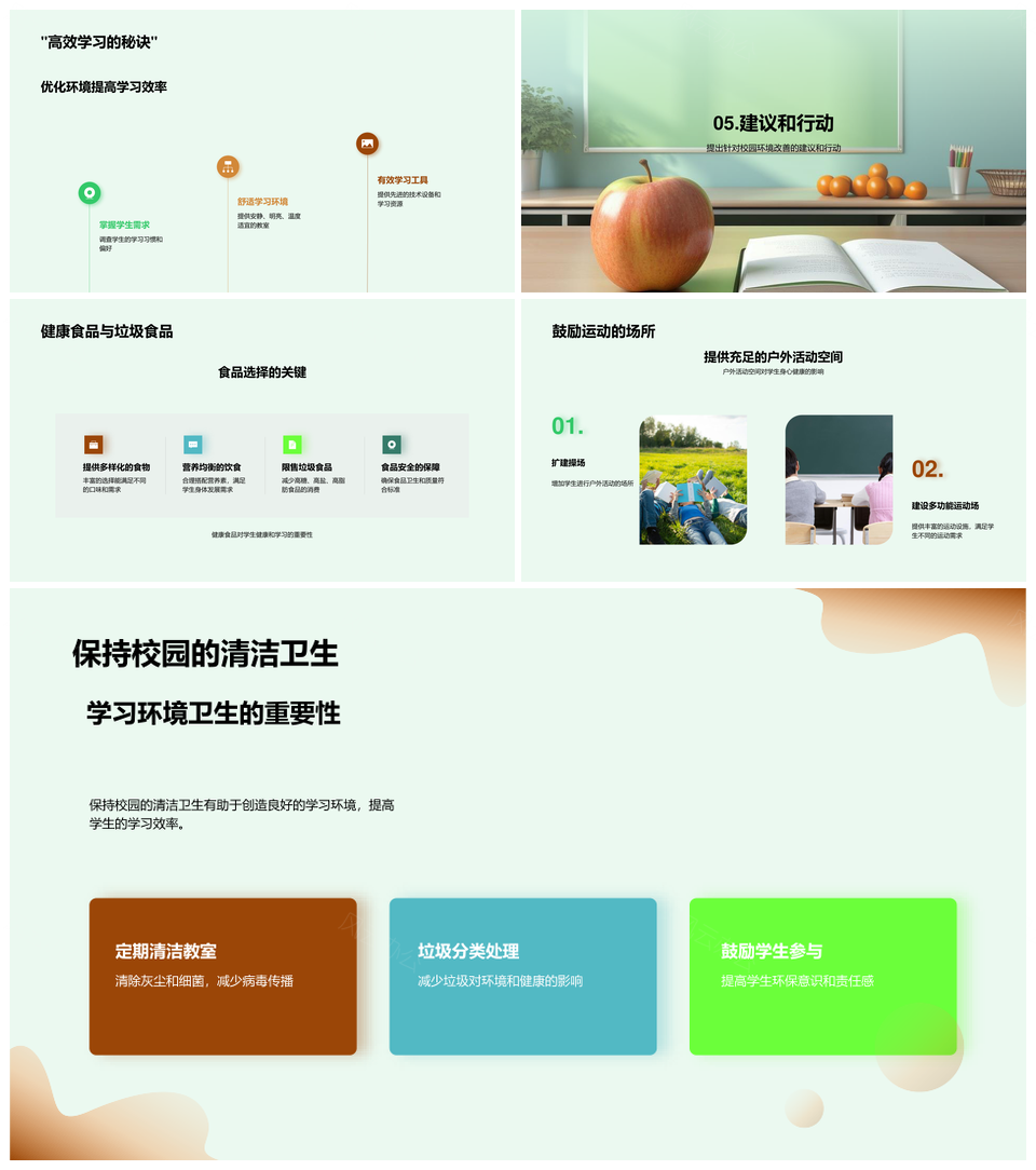 健康学习环境优化策略助力学生健康成绩PPT模板推荐