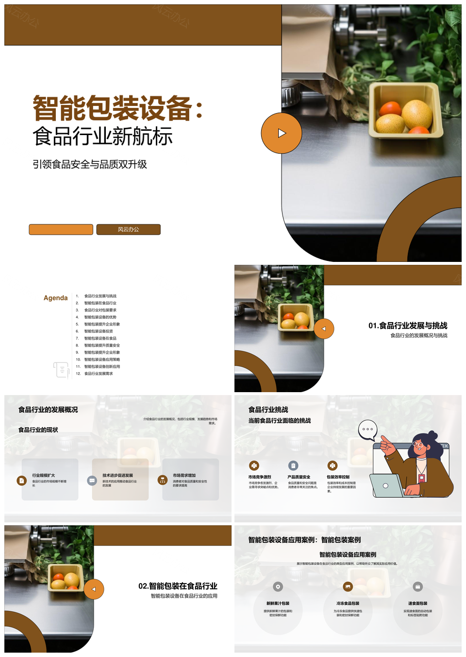 风云办公提供的智能包装设备驱动食品行业应用发展PPT模板,下载格式为pptx,一共44页,作品中文字及图均可以修改和编辑,图片更改请在作品中右键图片并更换,文字修改请直接点击文字进行修改。