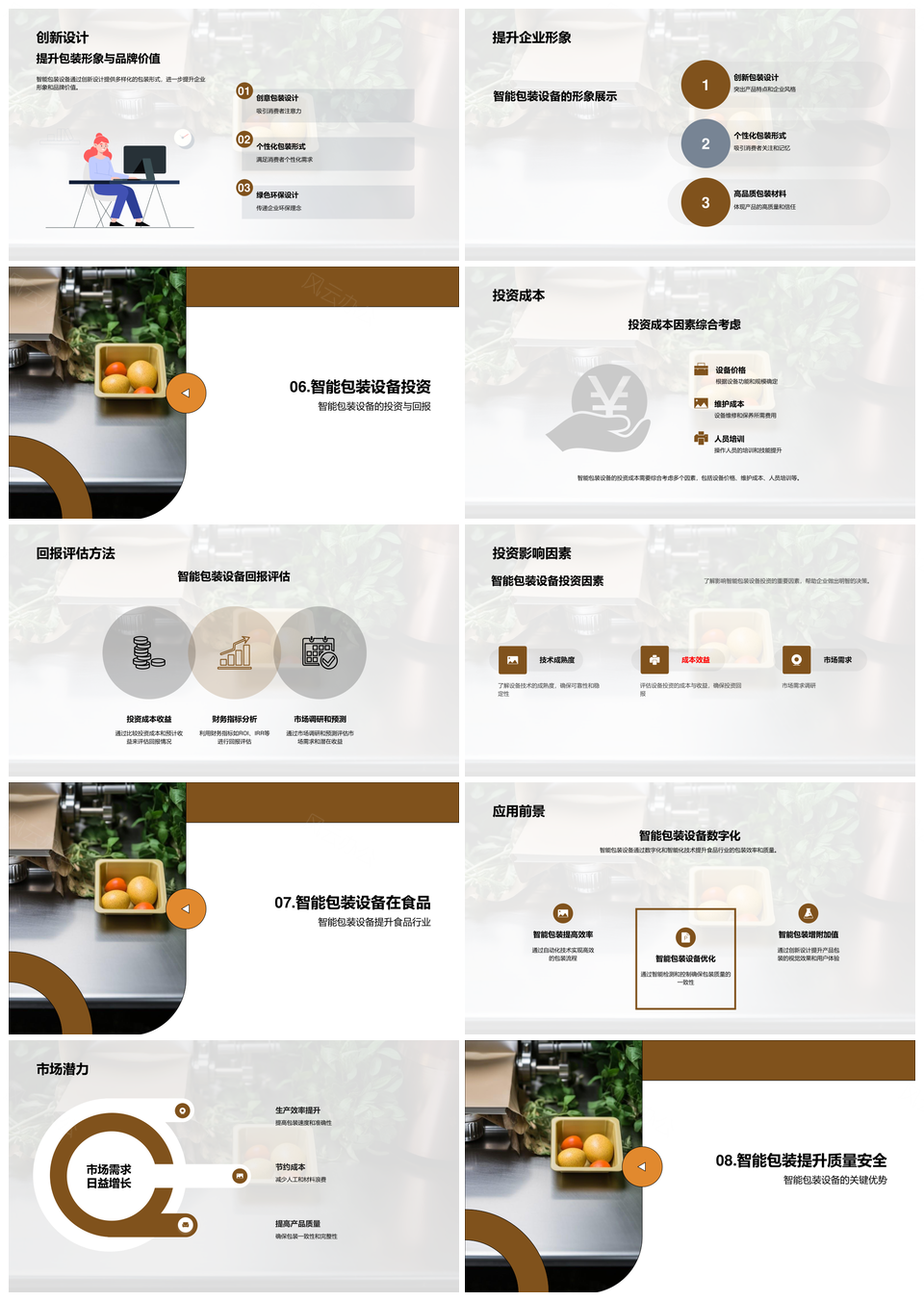 这是一张智能包装设备驱动食品行业应用发展PPT模板,包含智能包装设备、驱动、食品行业、应用发展等主题内容,也可用作智能包装设备驱动食品行业、智能包装设备驱动、包装设备驱动食品行业、设备驱动食品行业应用、驱动食品行业应用发展、智能包装设备、包装设备驱动、设备驱动食品、驱动食品行业、食品行业应用、行业应用发展、智能包装、包装设备、设备驱动、食品行业等PPT场景使用。