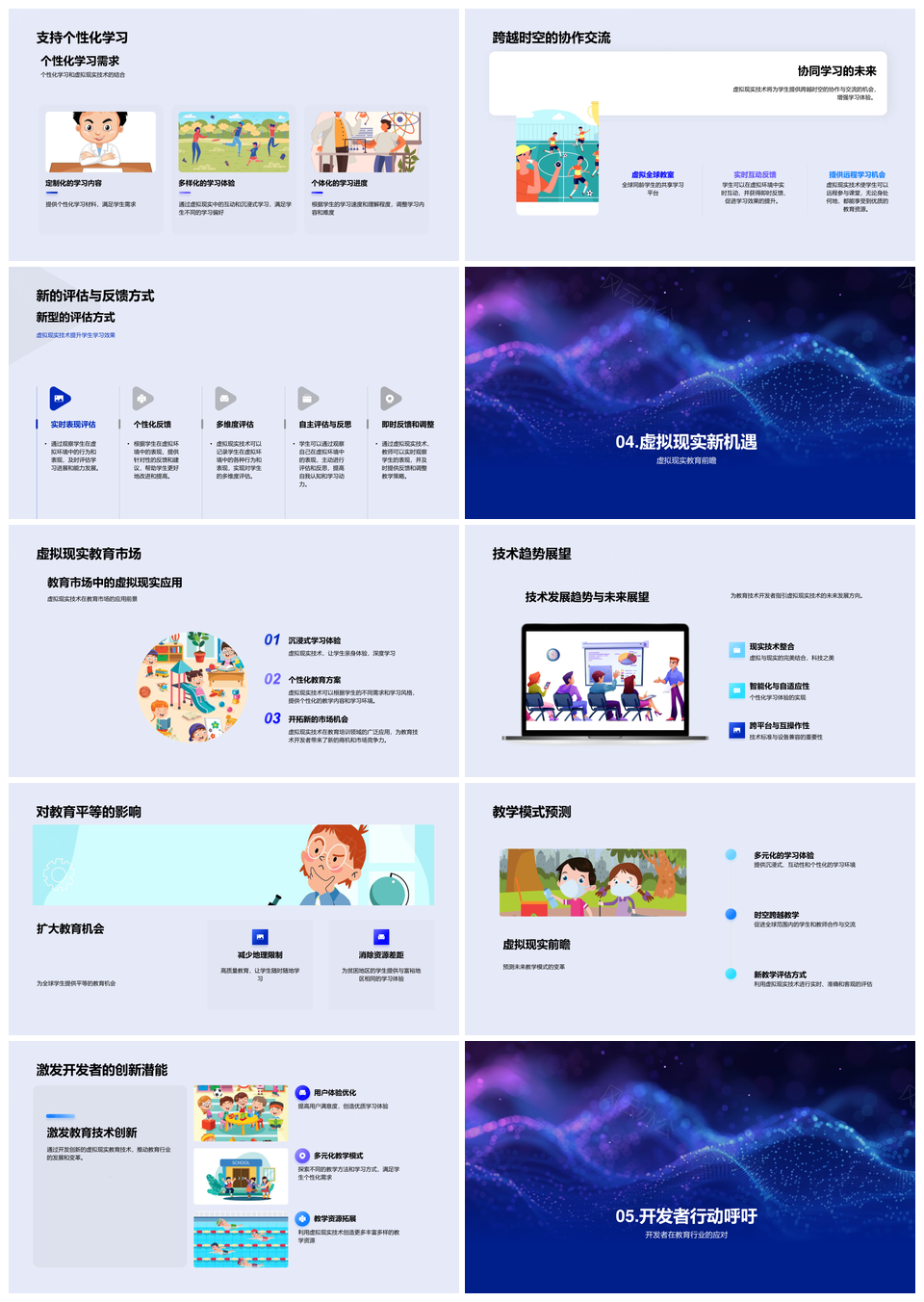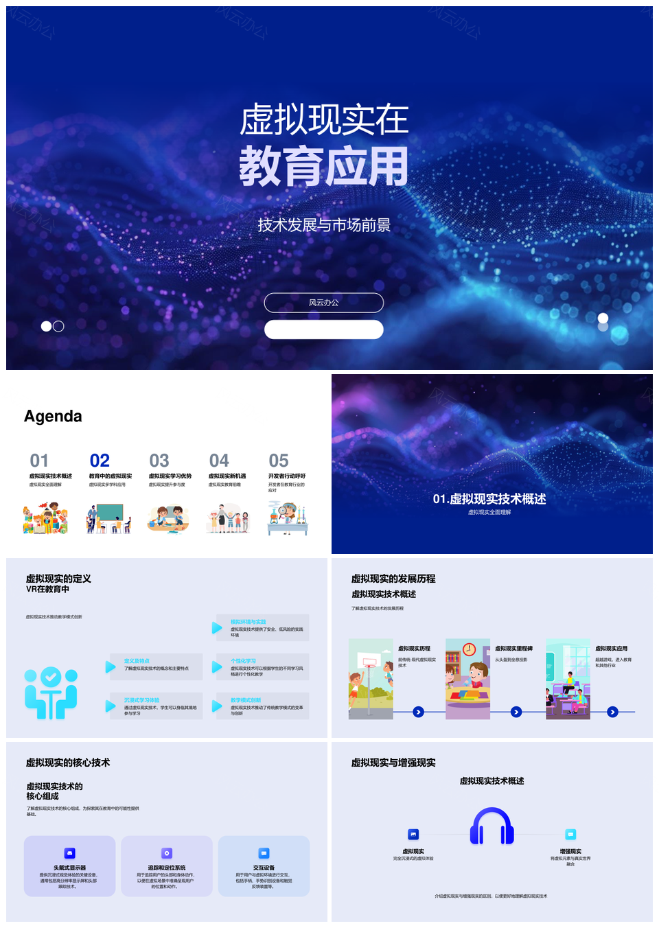 虚拟现实教育应用技术发展与市场前景PPT模板推荐