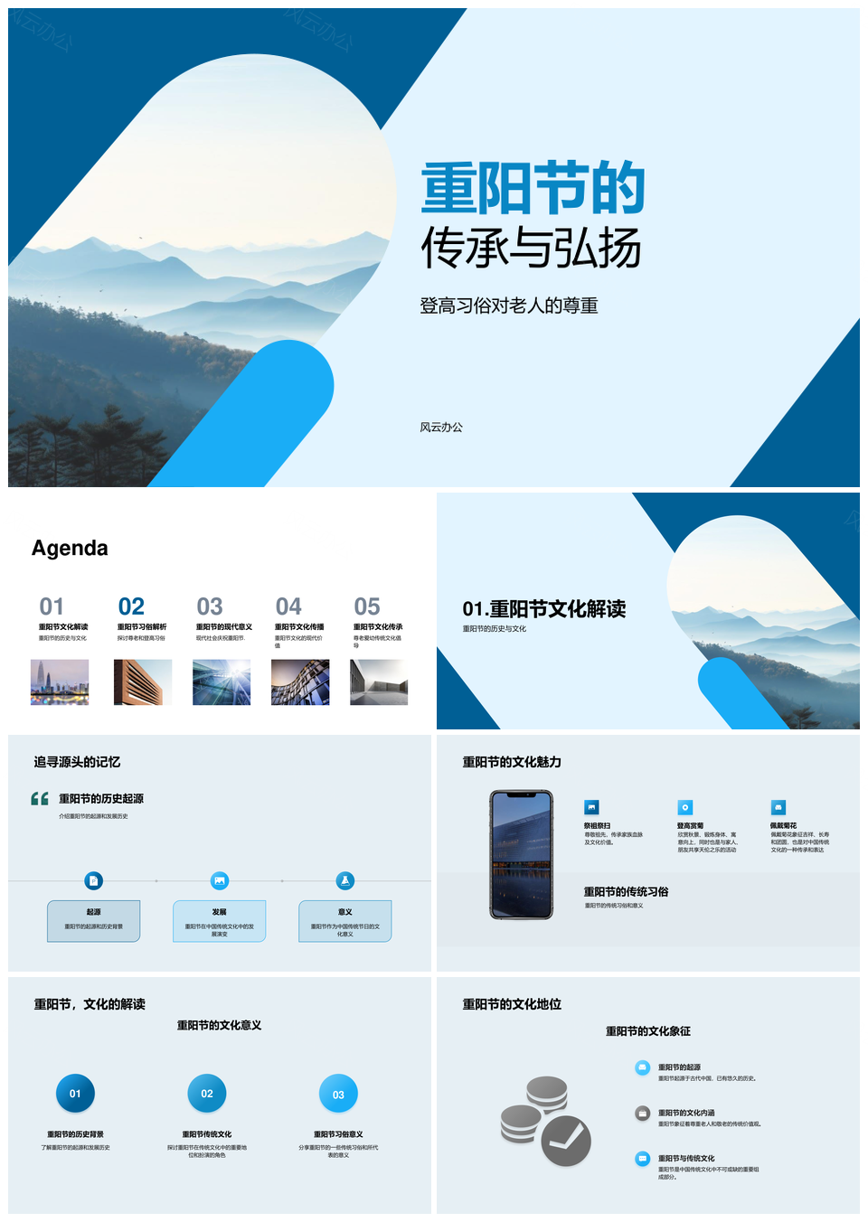 风云办公提供的重阳节登高敬老传承孝道文化PPT模板,下载格式为pptx,一共28页,作品中文字及图均可以修改和编辑,图片更改请在作品中右键图片并更换,文字修改请直接点击文字进行修改。
