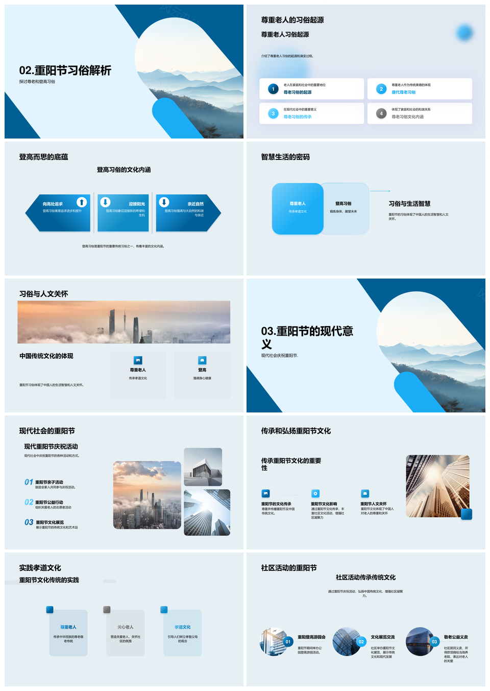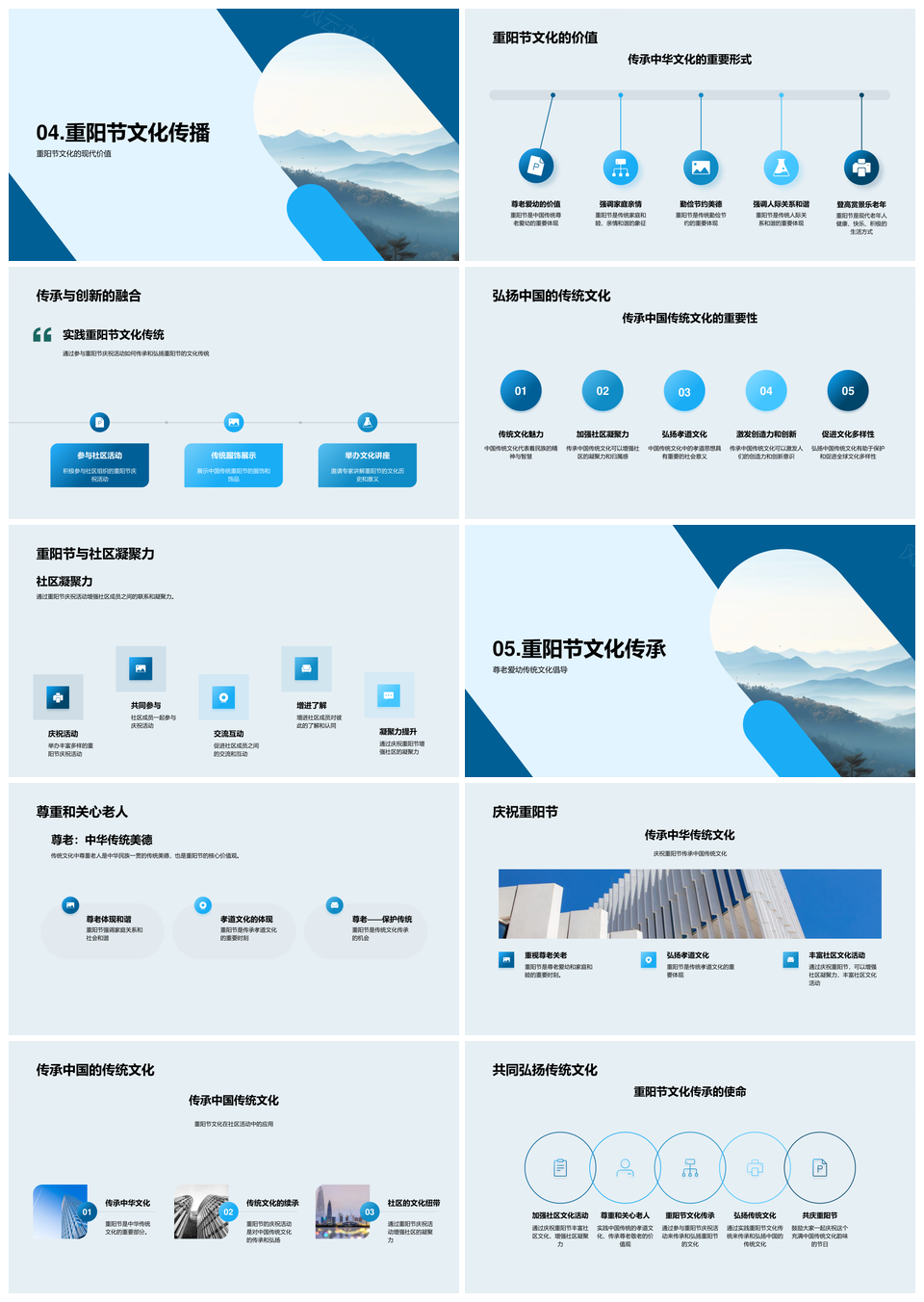 这是一张重阳节登高敬老传承孝道文化PPT模板,包含重阳节、登高、敬老、传承、孝道文化等主题内容,也可用作重阳节登高敬老传承、登高敬老传承孝道、敬老传承孝道文化、重阳节登高敬老、登高敬老传承、敬老传承孝道、传承孝道文化、重阳节登高、登高敬老、传承孝道、孝道文化、重阳节敬老、敬老传承、孝道传承、重阳节传承等PPT场景使用。