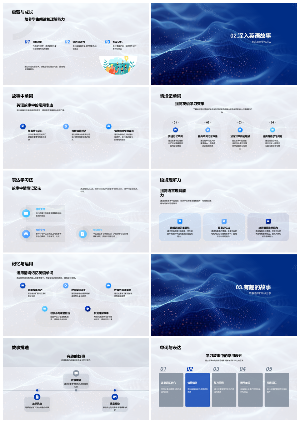这是一张小学英语故事教学法提升语言德育情境记忆PPT模板,包含小学英语、故事教学法、提升、语言、德育、情境记忆等主题内容,也可用作小学英语故事教学法提升语言、小学英语故事教学法、故事教学法提升语言德育、教学法提升语言德育情境、提升语言德育情境记忆、英语教学法提升语言、小学英语教学法提升、教学法提升语言德育、语言德育情境记忆、提升语言德育情境、英语教学法提升、小学英语故事、德育情境记忆、教学法提升、提升语言、德育情境等PPT场景使用。 风云办公提供的小学英语故事教学法提升语言德育情境记忆PPT模板,下载格式为pptx,一共33页,作品中文字及图均可以修改和编辑,图片更改请在作品中右键图片并更换,文字修改请直接点击文字进行修改。