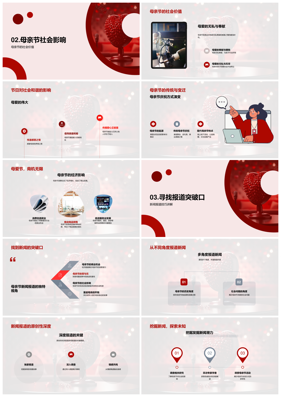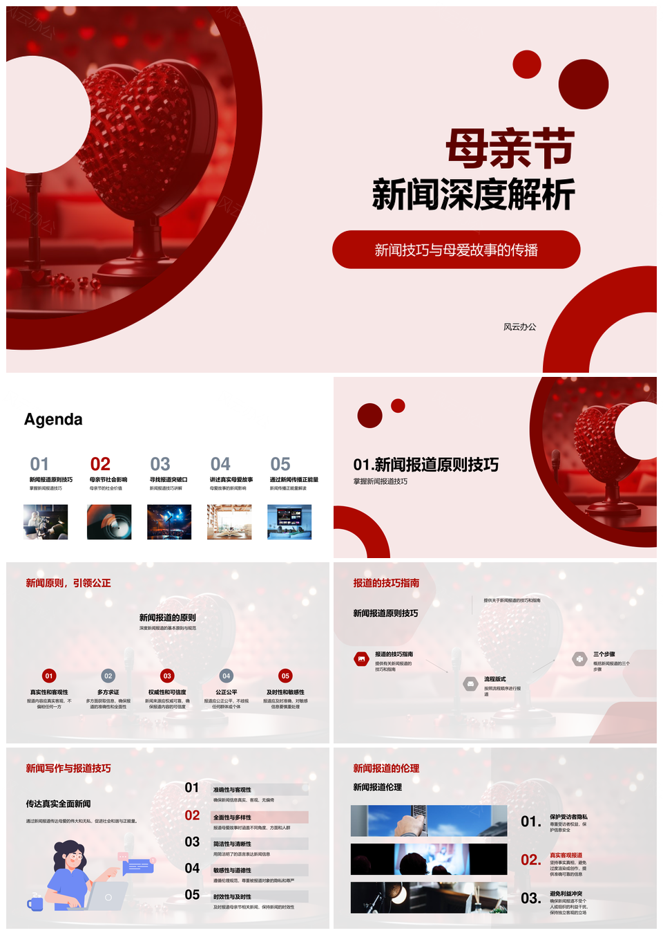 风云办公提供的母亲节新闻解析真实故事传播正能量PPT模板,下载格式为pptx,一共28页,作品中文字及图均可以修改和编辑,图片更改请在作品中右键图片并更换,文字修改请直接点击文字进行修改。
