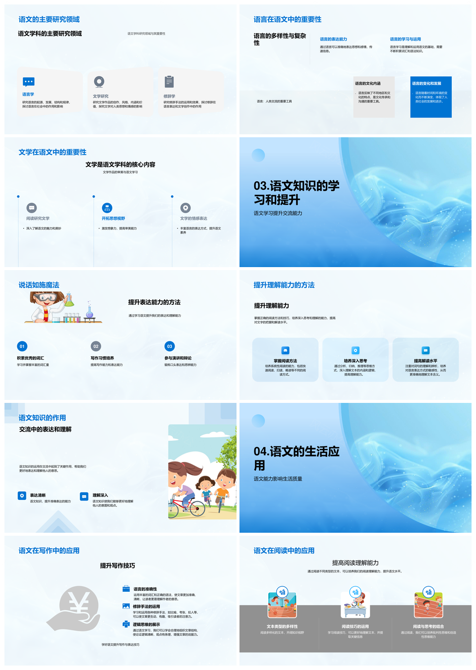 这是一张语文知识教育培养理解表达学科活动研究PPT模板,包含语文知识、教育、培养、理解、表达、学科、活动、研究等主题内容,也可用作语文知识教育培养、知识教育培养理解、教育培养理解表达、培养理解表达学科、理解表达学科活动、表达学科活动研究、语文知识教育、知识教育培养、教育培养理解、培养理解表达、理解表达学科、表达学科活动、学科活动研究、语文知识、知识教育、教育培养等PPT场景使用。 风云办公提供的语文知识教育培养理解表达学科活动研究PPT模板,下载格式为pptx,一共23页,作品中文字及图均可以修改和编辑,图片更改请在作品中右键图片并更换,文字修改请直接点击文字进行修改。