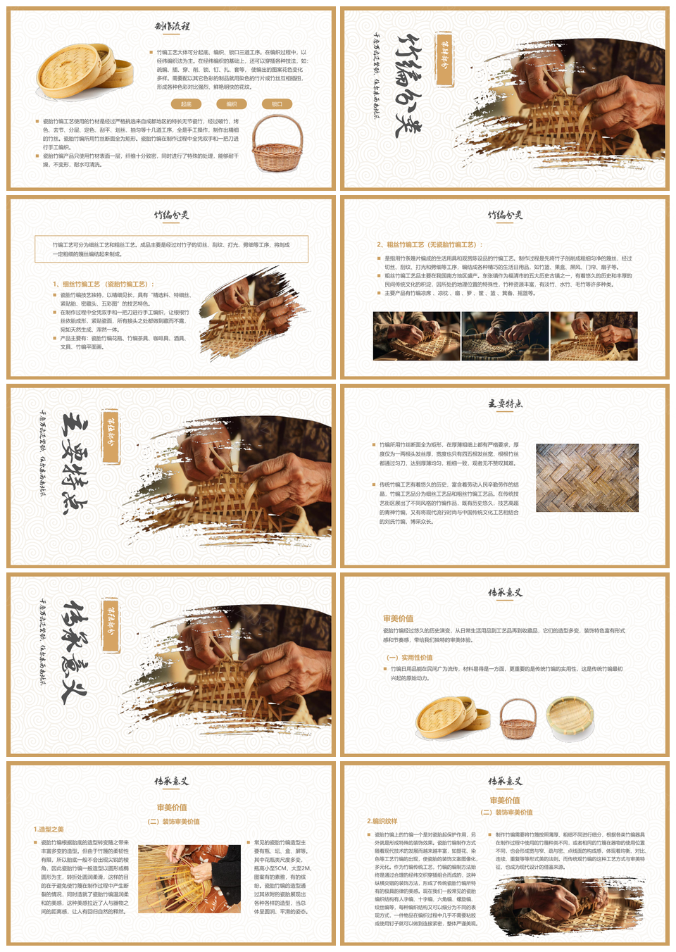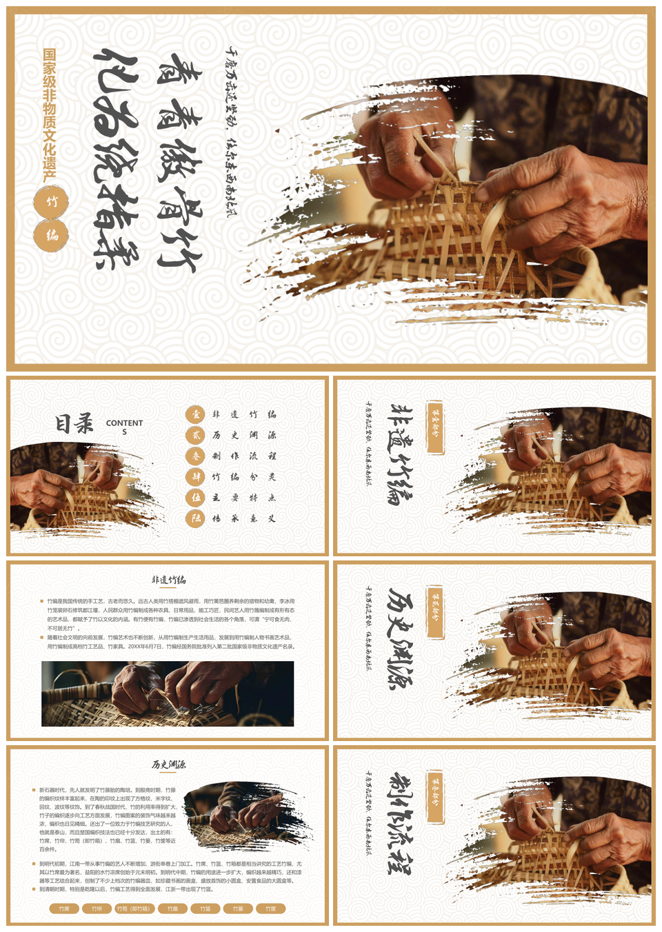非遗竹编竹器竹篓实拍传承讲座文化科普PPT模板推荐