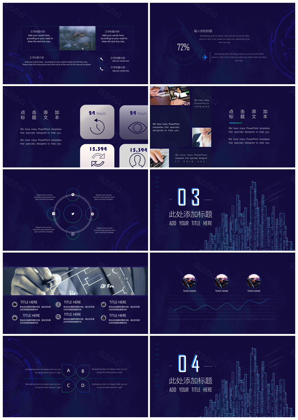 2025蓝色砥砺前行欧美项目展示PPT模板
