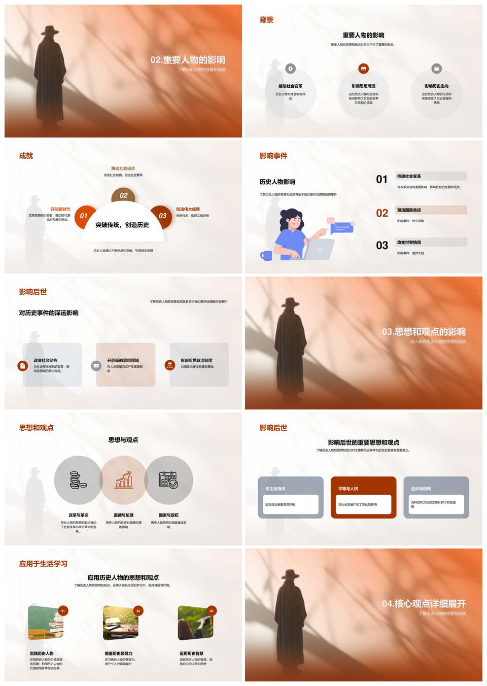 这是一张历史人物背景思想成就及后世影响PPT模板,包含历史人物、背景、思想、成就、后世影响等主题内容,也可用作历史人物背景思想成就、人物背景思想成就影响、历史人物思想成就后世、历史背景思想成就影响、历史人物背景思想后世、人物思想成就后世影响、背景思想成就后世影响、历史人物背景成就影响、历史思想成就后世影响、历史人物成就后世影响、人物背景思想后世影响、历史背景思想成就、人物思想成就后世、背景成就后世影响、历史人物背景思想等PPT场景使用。