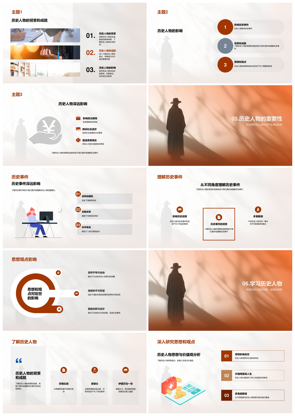 风云办公提供的历史人物背景思想成就及后世影响PPT模板,下载格式为pptx,一共29页,作品中文字及图均可以修改和编辑,图片更改请在作品中右键图片并更换,文字修改请直接点击文字进行修改。