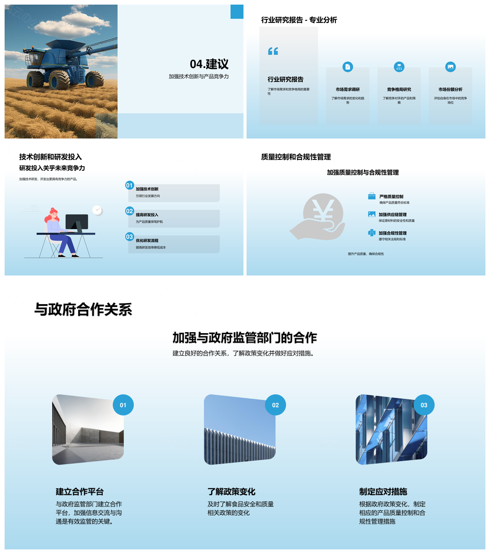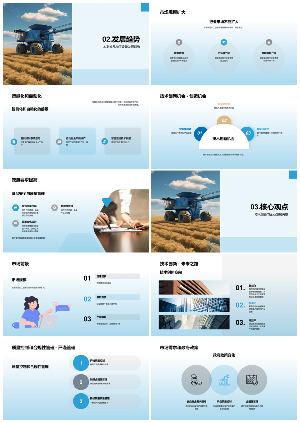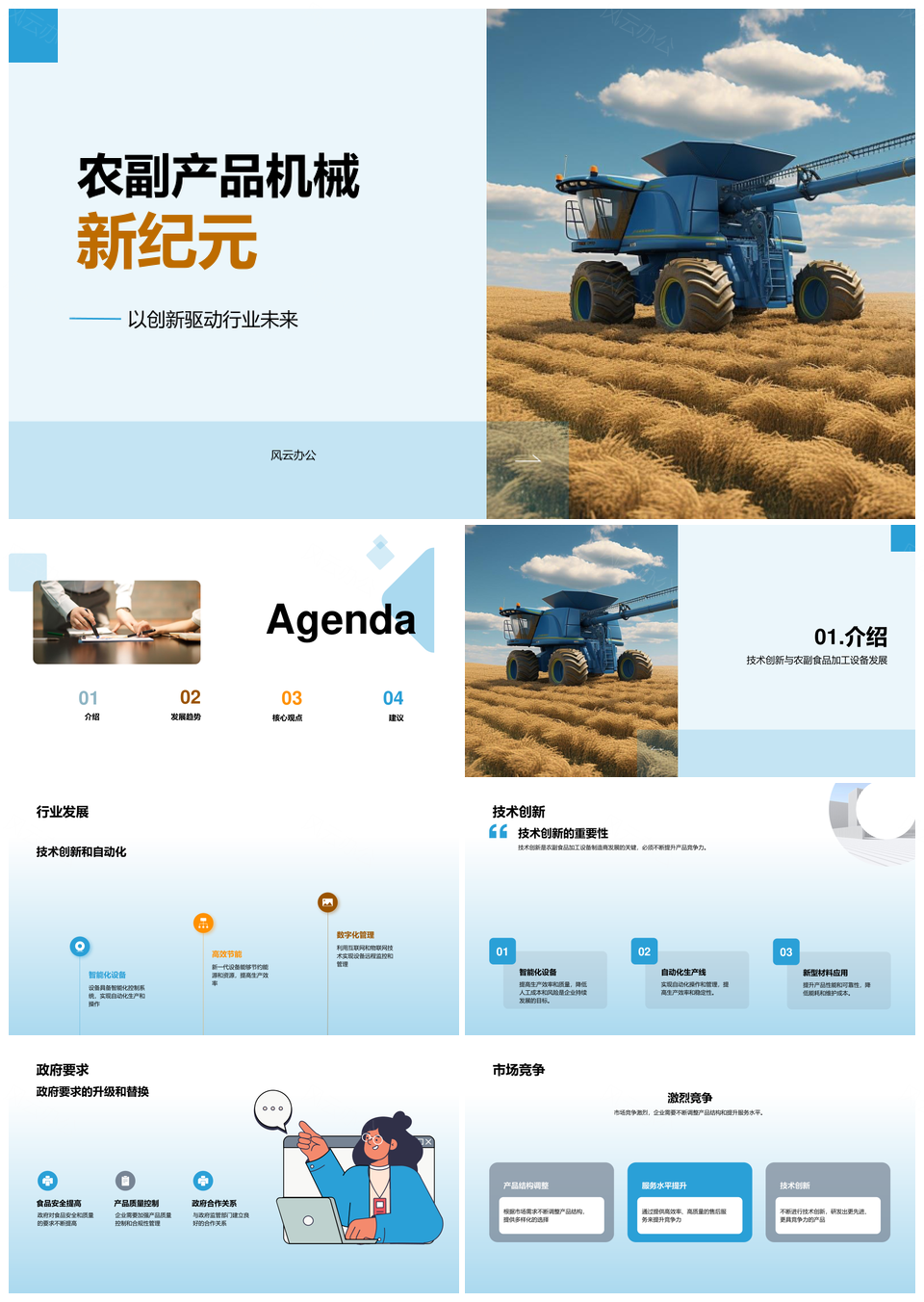 风云办公提供的农副加工机械智造质安新纪元PPT模板,下载格式为pptx,一共23页,作品中文字及图均可以修改和编辑,图片更改请在作品中右键图片并更换,文字修改请直接点击文字进行修改。