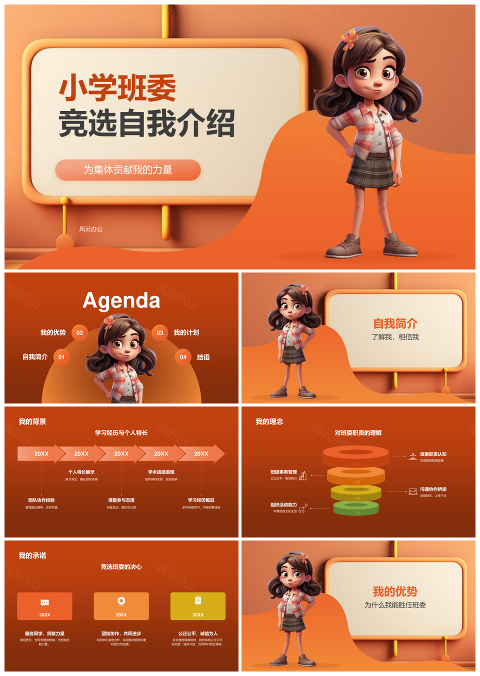风云办公提供的班委竞选自我介绍班级学生干部发言PPT模板,下载格式为pptx,一共21页,作品中文字及图均可以修改和编辑,图片更改请在作品中右键图片并更换,文字修改请直接点击文字进行修改。
