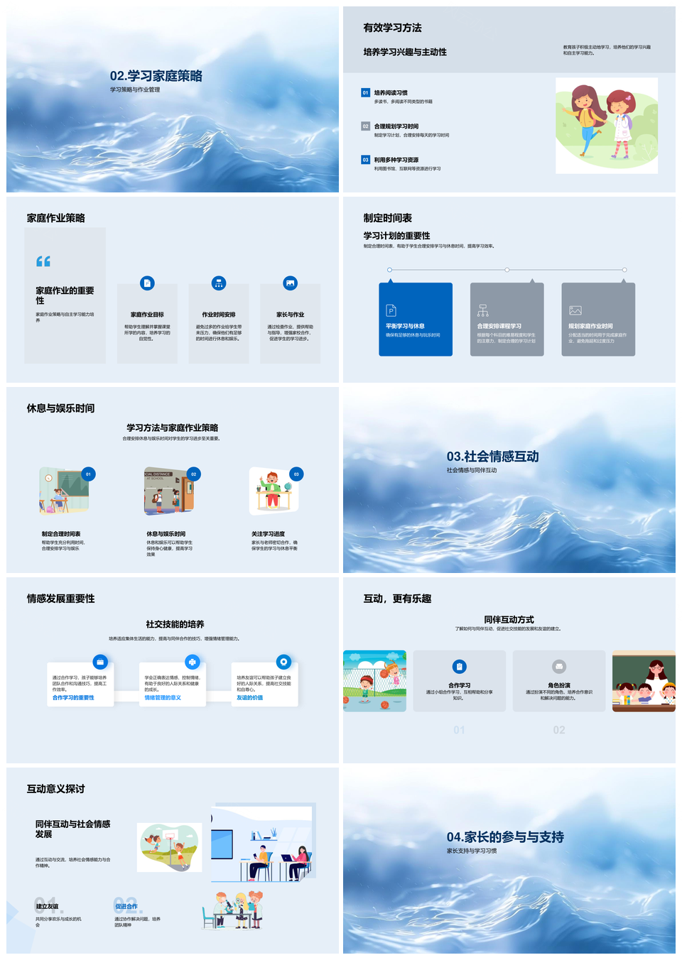 三年级学期规划理解动手学习家校互动情感发展PPT模板推荐