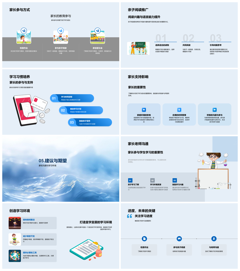 家校共筑学习桥学期规划学科重点反馈PPT模板