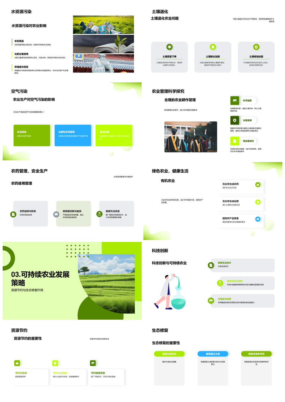 这是一张农业生产环保管理防控水土气污染PPT模板,包含农业生产、环保管理、防控、水土气污染等主题内容,也可用作农业生产环保管理防控、环保管理防控水土气污染、农业生产环保防控水土气污染、农业生产管理防控水土气污染、农业生产环保管理、环保管理防控、管理防控水土气污染、农业生产环保防控、环保管理水土气污染、农业生产管理环保、农业生产环保、环保管理、管理防控、防控水土气污染、农业生产防控等PPT场景使用。