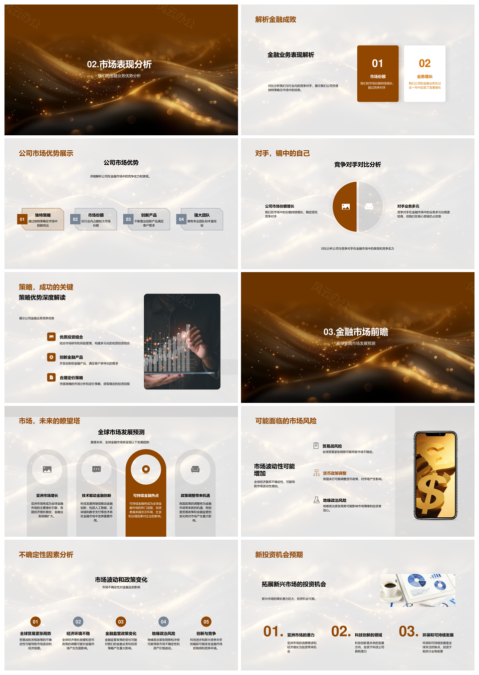 这是一张金融述职全球趋势业务总结竞对分析策略优势应对PPT模板,包含金融、述职、全球趋势、业务总结、竞对分析、策略、优势、应对等主题内容,也可用作金融述职全球趋势业务总结、全球趋势业务总结竞对分析、业务总结竞对分析策略优势、竞对分析策略优势应对、金融述职全球趋势、全球趋势业务总结、业务总结竞对分析、竞对分析策略优势、策略优势应对全球、述职全球趋势业务、趋势业务总结竞对、总结竞对分析策略、分析策略优势应对、金融述职策略优势、全球趋势应对策略等PPT场景使用。 风云办公提供的金融述职全球趋势业务总结竞对分析策略优势应对PPT模板,下载格式为pptx,一共28页,作品中文字及图均可以修改和编辑,图片更改请在作品中右键图片并更换,文字修改请直接点击文字进行修改。
