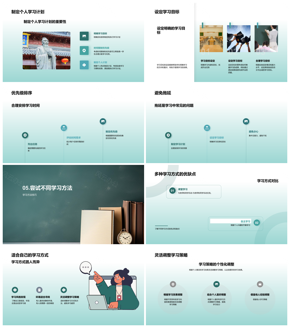 风云办公提供的高中高效学习方法时间管理技巧PPT模板,下载格式为pptx,一共26页,作品中文字及图均可以修改和编辑,图片更改请在作品中右键图片并更换,文字修改请直接点击文字进行修改。