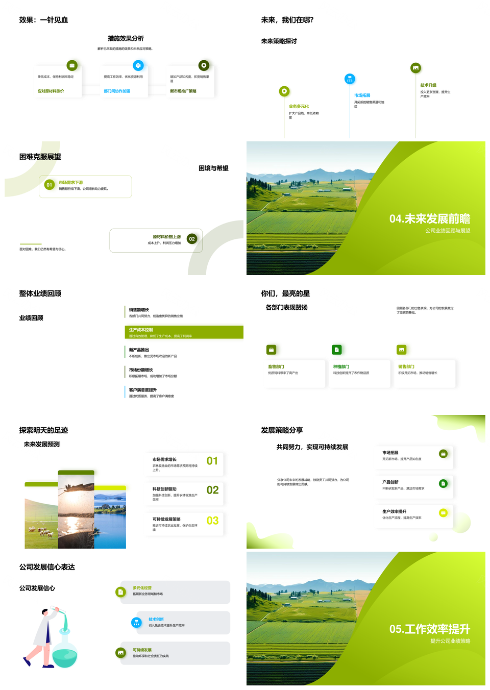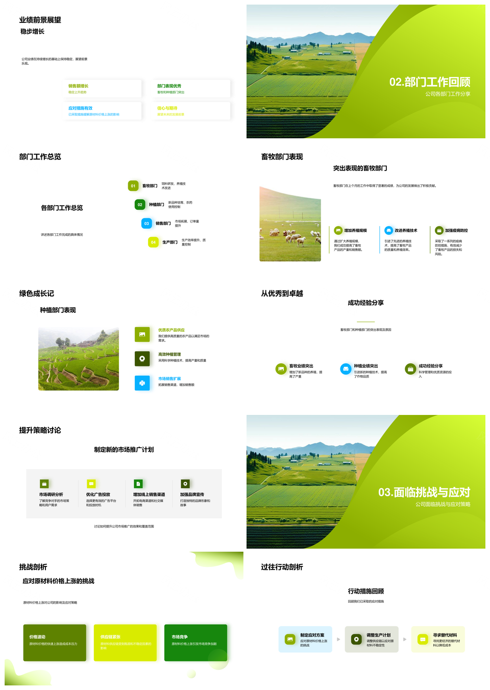这是一张农林牧渔CEO应对原料涨价畜牧种植业绩趋势农场景观PPT模板,包含农林牧渔、CEO、原料涨价、畜牧、种植、业绩趋势、农场、景观等主题内容,也可用作农林牧渔CEO应对原料涨价、CEO应对原料涨价畜牧、原料涨价畜牧种植业绩、畜牧种植业绩趋势农场、种植业绩趋势农场景观、应对原料涨价、农林牧渔CEO应对、原料涨价畜牧、畜牧种植业绩、种植业绩趋势、业绩趋势农场、趋势农场景观、农林牧渔CEO、应对原料、原料涨价、畜牧种植等PPT场景使用。 风云办公提供的农林牧渔CEO应对原料涨价畜牧种植业绩趋势农场景观PPT模板,下载格式为pptx,一共33页,作品中文字及图均可以修改和编辑,图片更改请在作品中右键图片并更换,文字修改请直接点击文字进行修改。