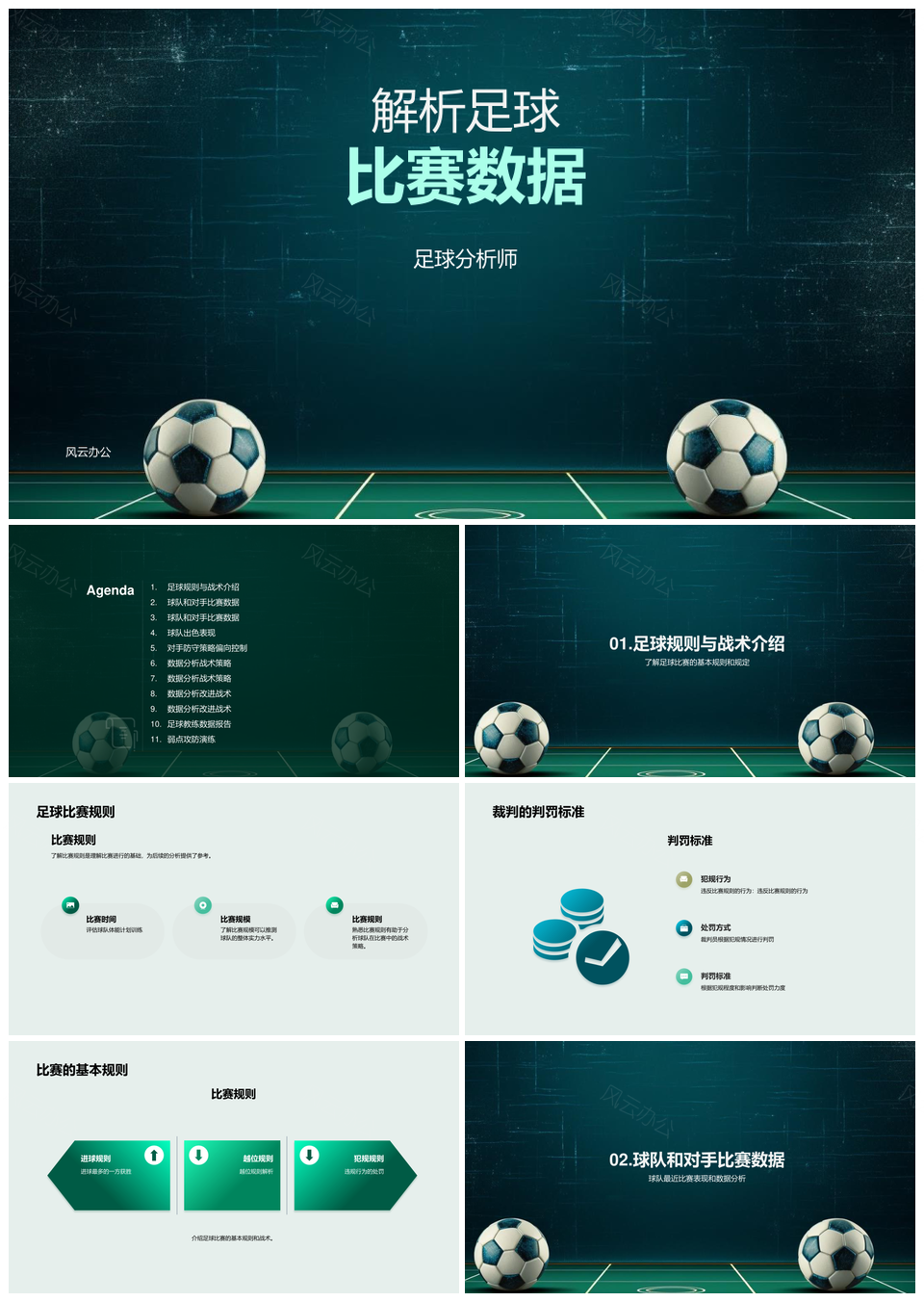 风云办公提供的足球比赛数据规则战术攻防解析PPT模板,下载格式为pptx,一共47页,作品中文字及图均可以修改和编辑,图片更改请在作品中右键图片并更换,文字修改请直接点击文字进行修改。