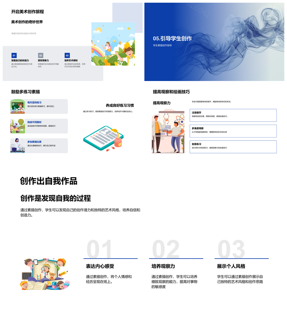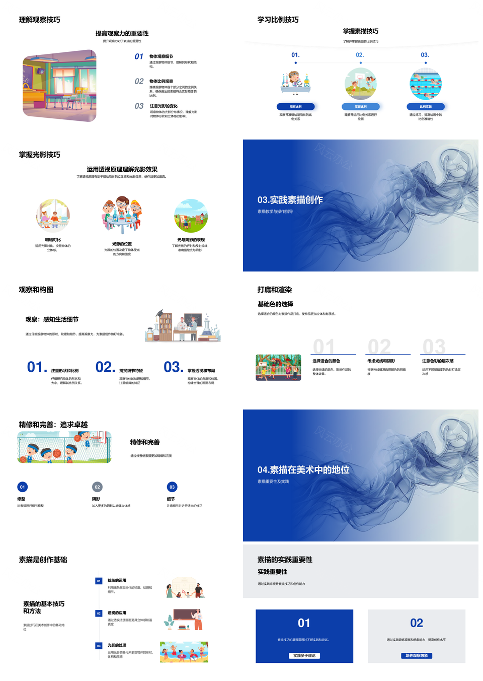 初一素描基础技巧观察光影比例创作指导PPT模板推荐