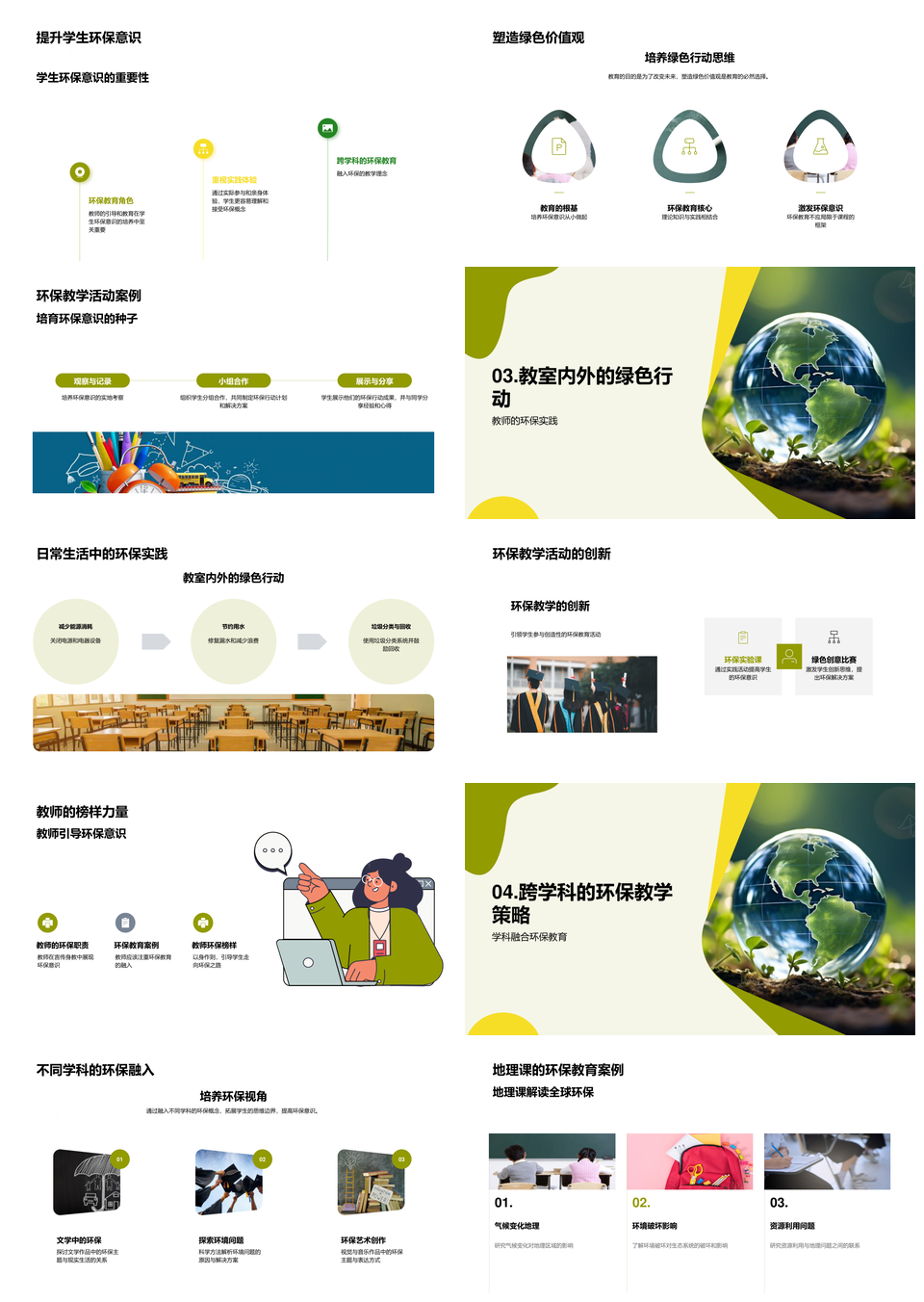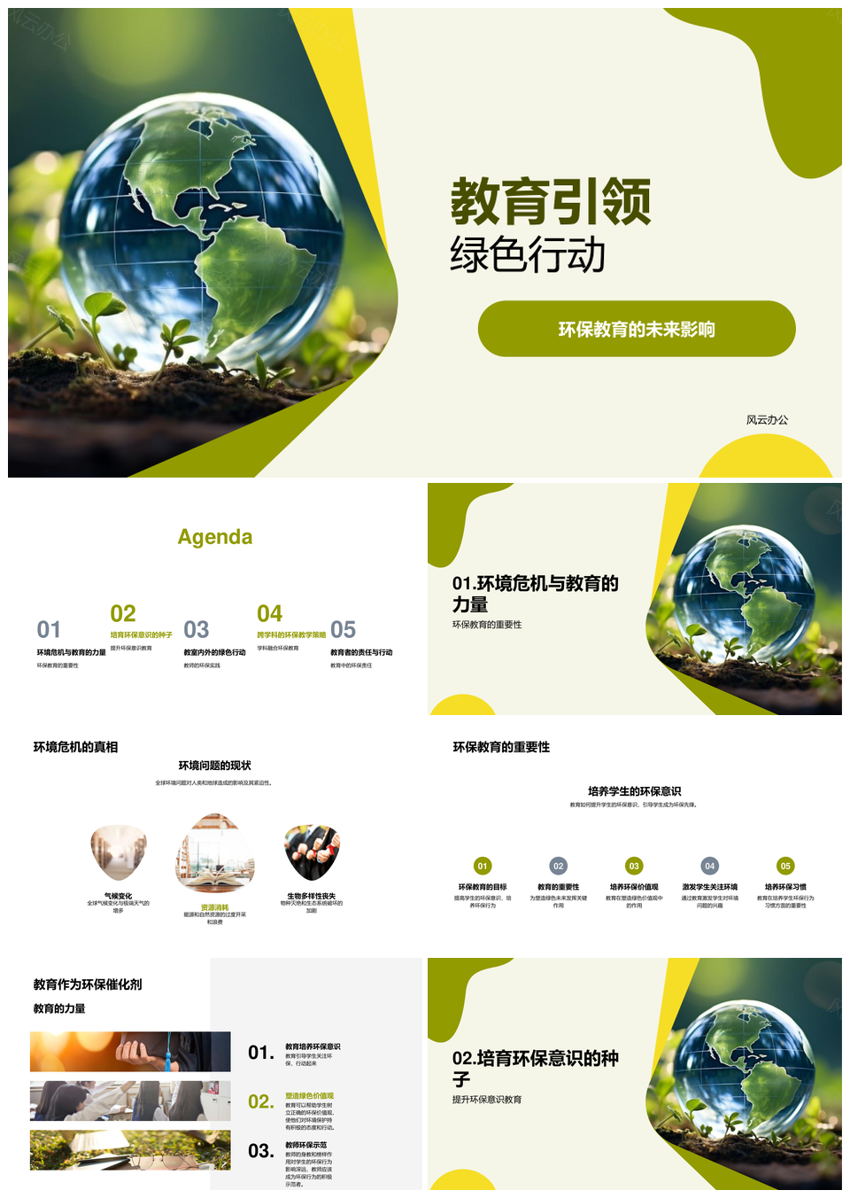 风云办公提供的教育引领环保实践培育全球绿色价值观PPT模板,下载格式为pptx,一共23页,作品中文字及图均可以修改和编辑,图片更改请在作品中右键图片并更换,文字修改请直接点击文字进行修改。