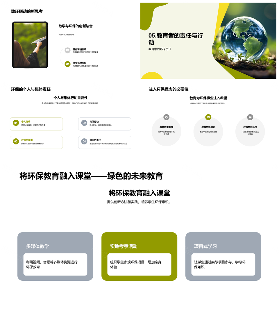 这是一张教育引领环保实践培育全球绿色价值观PPT模板,包含教育、引领、环保、实践、培育、全球、绿色、价值观等主题内容,也可用作教育引领环保实践、环保实践培育全球绿色、教育引领环保实践培育、引领环保实践培育全球、环保实践培育全球绿色、实践培育全球绿色价值观、培育全球绿色价值观、教育引领环保、教育引领实践、环保实践培育、实践培育全球、培育全球绿色、全球绿色价值观、教育引领、环保实践等PPT场景使用。
