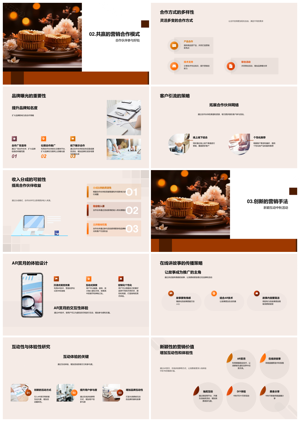 这是一张中秋联盟情感营销AR赏月月饼引流品牌曝光PPT模板,包含中秋、联盟、情感、营销、AR、赏月、月饼、引流、品牌、曝光等主题内容,也可用作中秋联盟情感营销AR赏月、中秋联盟情感营销、AR赏月月饼引流、联盟情感营销AR、情感营销AR赏月、营销AR赏月月饼、赏月月饼引流品牌、引流品牌曝光、品牌曝光引流、联盟情感营销、AR赏月月饼、赏月月饼引流、情感营销AR、月饼引流品牌、引流品牌曝光等PPT场景使用。 风云办公提供的中秋联盟情感营销AR赏月月饼引流品牌曝光PPT模板,下载格式为pptx,一共28页,作品中文字及图均可以修改和编辑,图片更改请在作品中右键图片并更换,文字修改请直接点击文字进行修改。
