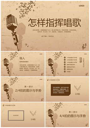 棕色复古音乐指挥唱歌动态PPT模板宣传课件