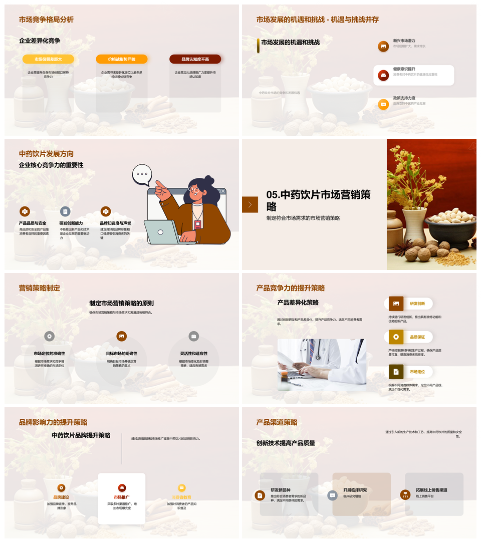这是一张中药饮片市场机遇竞争消费趋势规模增速格局分析PPT模板,包含中药饮片、市场、机遇、竞争、消费、趋势、规模、增速、格局、分析等主题内容,也可用作中药饮片市场竞争消费趋势规模增速格局分析、中药饮片市场机遇竞争消费趋势规模、市场机遇竞争消费趋势规模增速、中药饮片市场机遇竞争格局分析、市场竞争消费趋势规模增速格局、机遇竞争消费趋势规模增速、中药饮片市场竞争消费趋势、市场机遇竞争消费趋势、竞争消费趋势规模增速、中药饮片市场竞争格局、中药饮片市场机遇竞争、市场机遇竞争格局、消费趋势规模增速、市场规模增速格局、竞争格局分析等PPT场景使用。 风云办公提供的中药饮片市场机遇竞争消费趋势规模增速格局分析PPT模板,下载格式为pptx,一共26页,作品中文字及图均可以修改和编辑,图片更改请在作品中右键图片并更换,文字修改请直接点击文字进行修改。