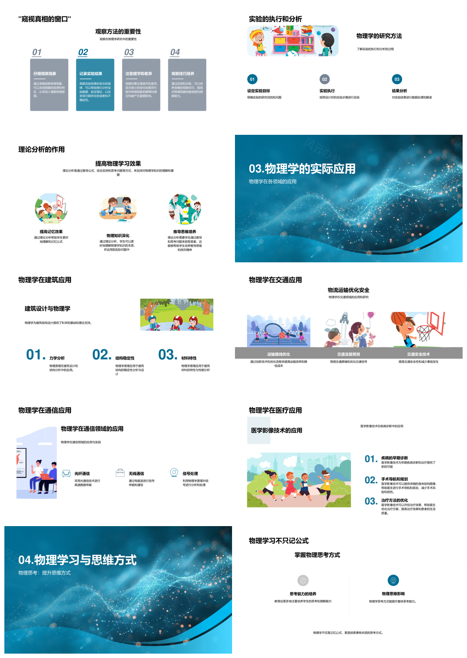物理思维实验理论分析建筑交通通信应用教学PPT模板推荐