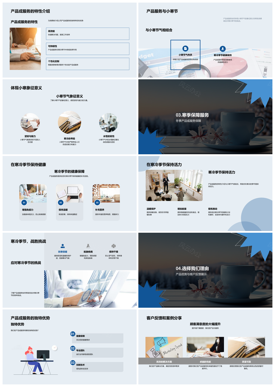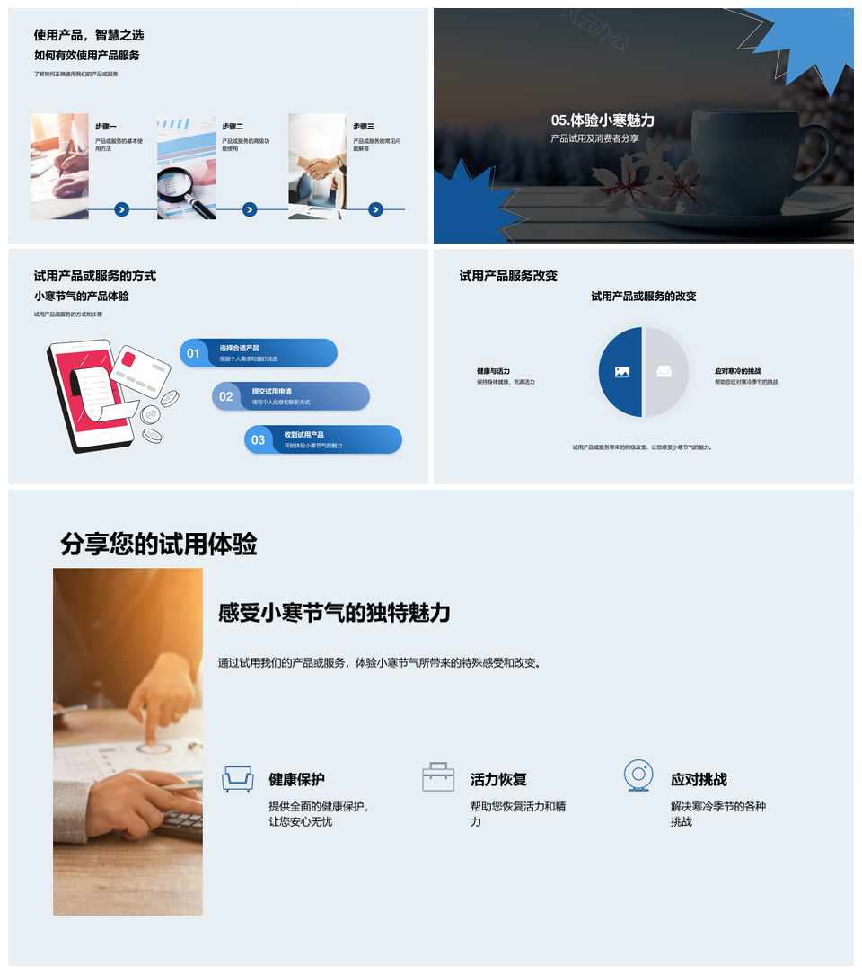 风云办公提供的小寒健康产品服务试用市场研讨会PPT模板,下载格式为pptx,一共23页,作品中文字及图均可以修改和编辑,图片更改请在作品中右键图片并更换,文字修改请直接点击文字进行修改。