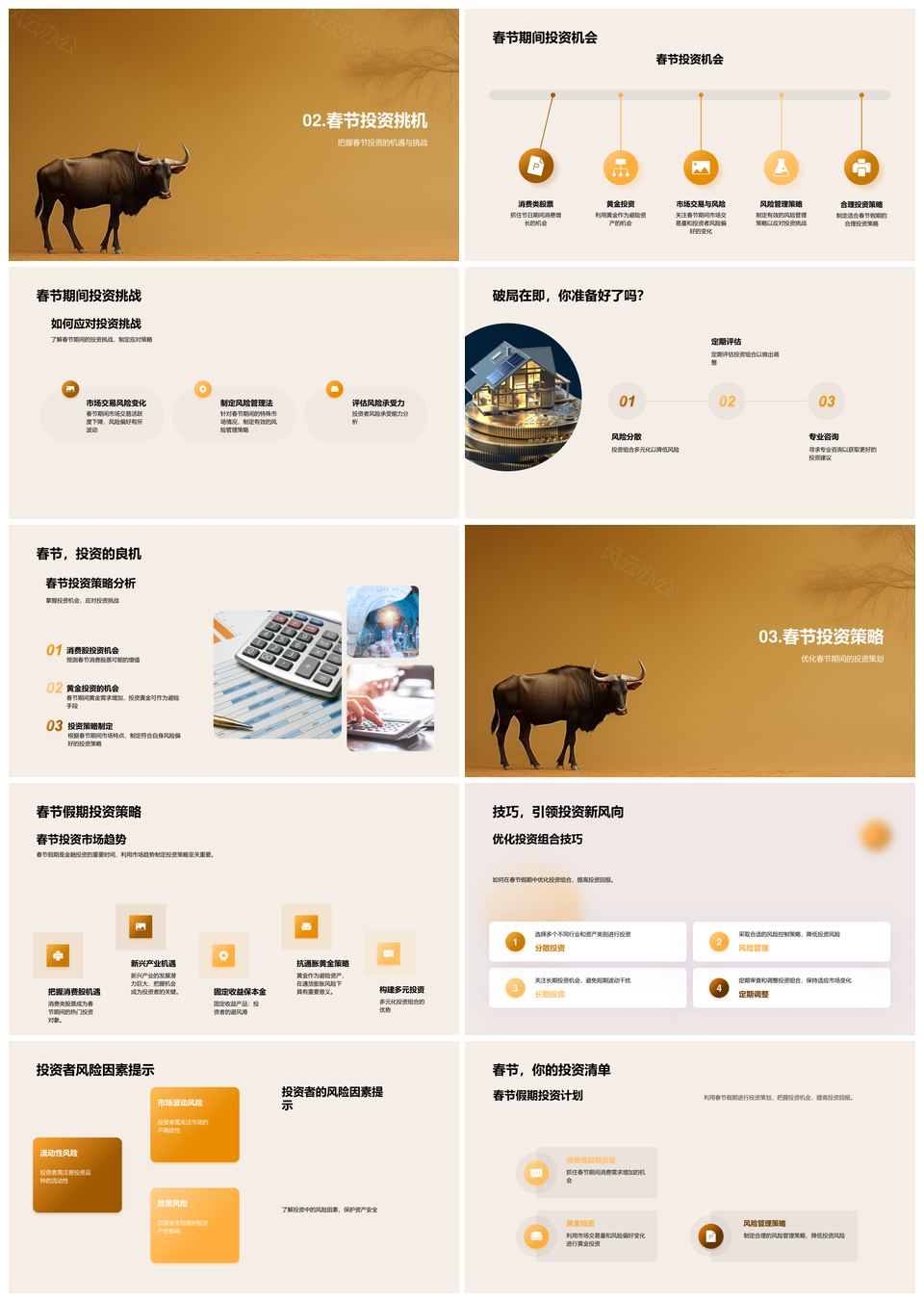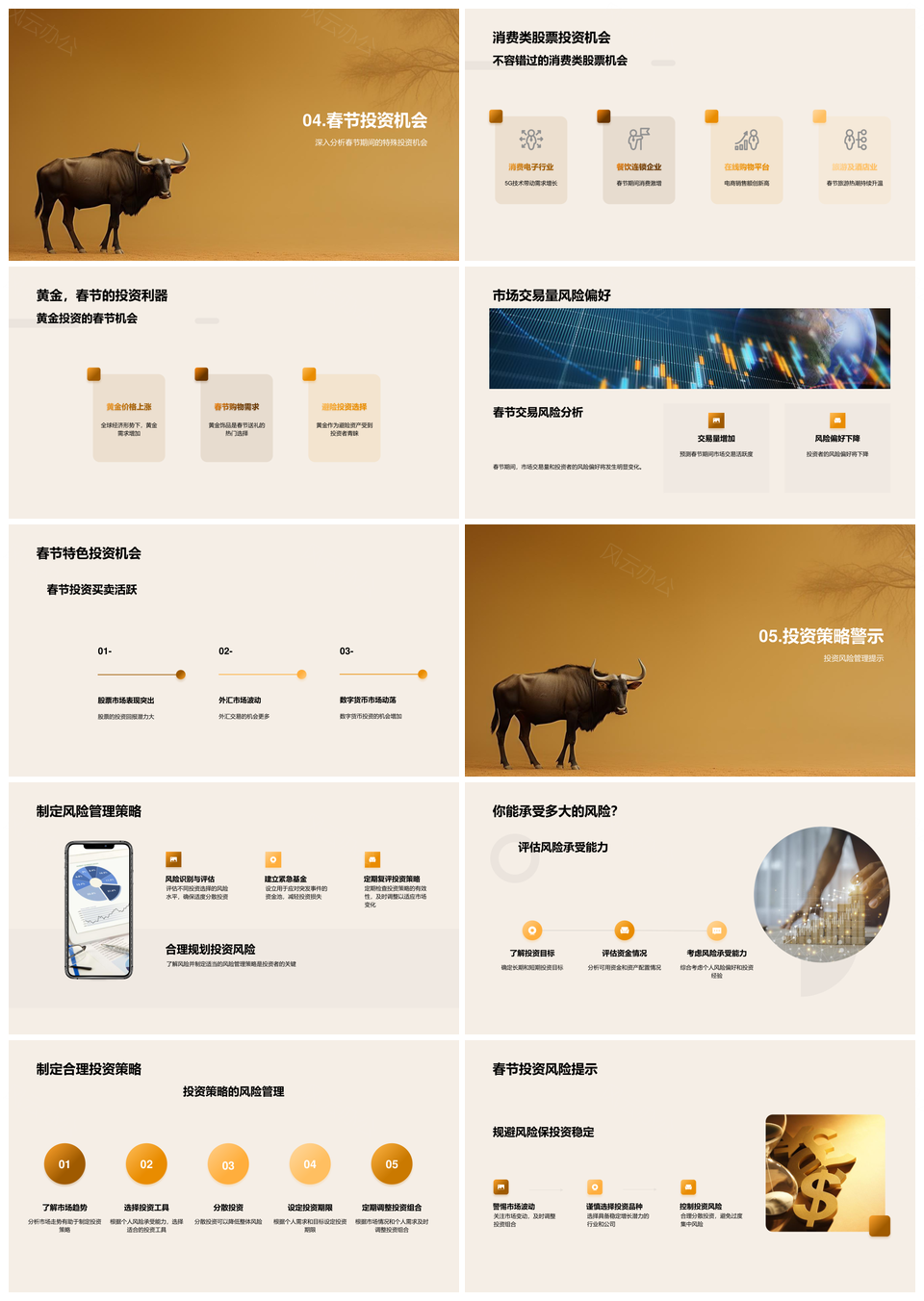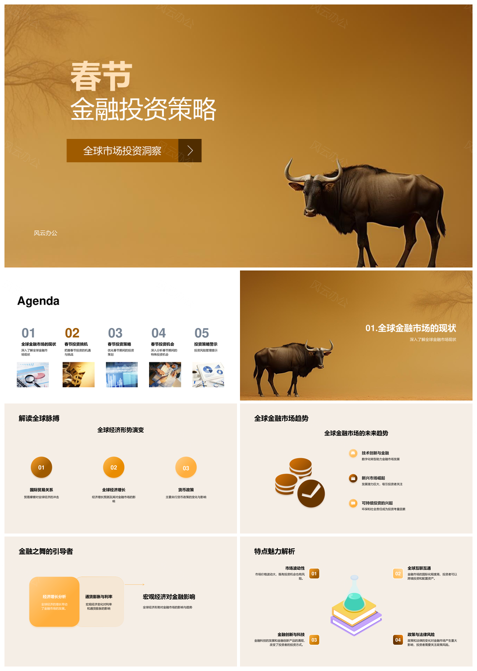 风云办公提供的春节全球金融投资策略金牛机遇挑战PPT模板,下载格式为pptx,一共28页,作品中文字及图均可以修改和编辑,图片更改请在作品中右键图片并更换,文字修改请直接点击文字进行修改。