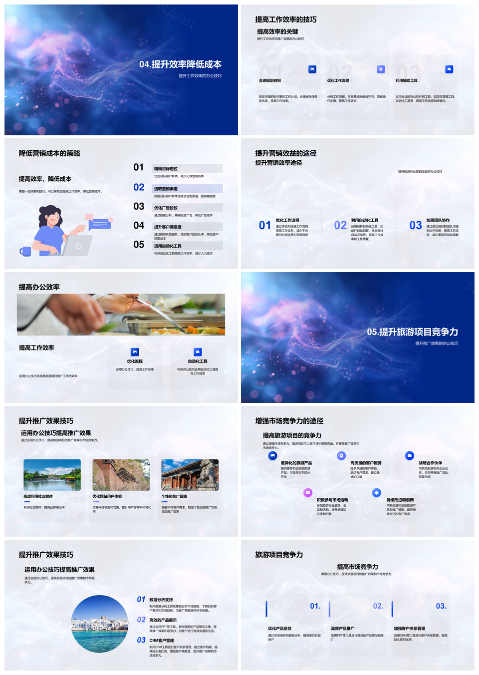 这是一张旅游推广策略与办公技巧提升市场竞争力PPT模板,包含旅游推广策略、办公技巧、提升、市场竞争力等主题内容,也可用作旅游推广策略办公技巧、推广策略办公技巧提升竞争力、办公技巧提升市场竞争力、旅游推广策略提升竞争力、推广办公技巧提升市场、策略办公技巧提升竞争、旅游推广策略办公推广、办公技巧提升竞争力、策略提升市场竞争力、旅游推广提升竞争力、推广策略提升市场、旅游办公技巧提升、策略办公提升竞争、旅游市场竞争力、办公竞争力提升等PPT场景使用。 风云办公提供的旅游推广策略与办公技巧提升市场竞争力PPT模板,下载格式为pptx,一共28页,作品中文字及图均可以修改和编辑,图片更改请在作品中右键图片并更换,文字修改请直接点击文字进行修改。