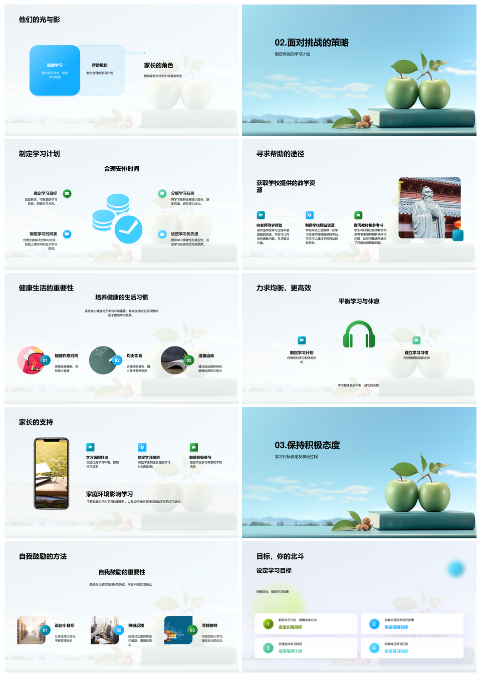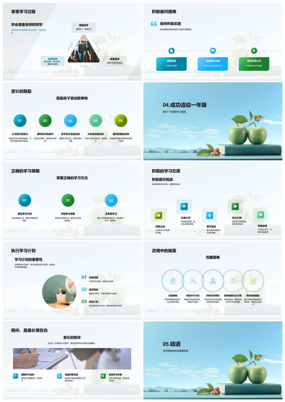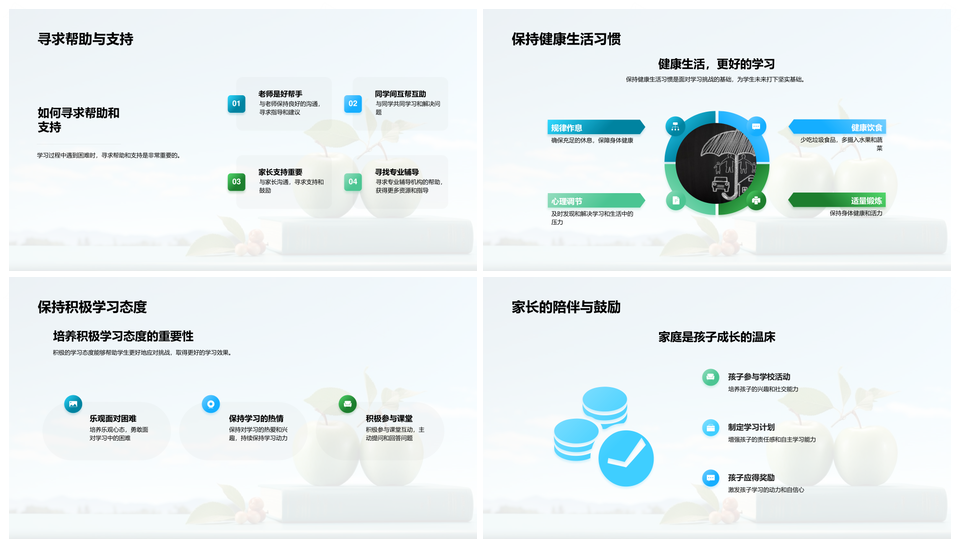 一年级学生健康习惯家长引导心理成长沟通苹果PPT模板