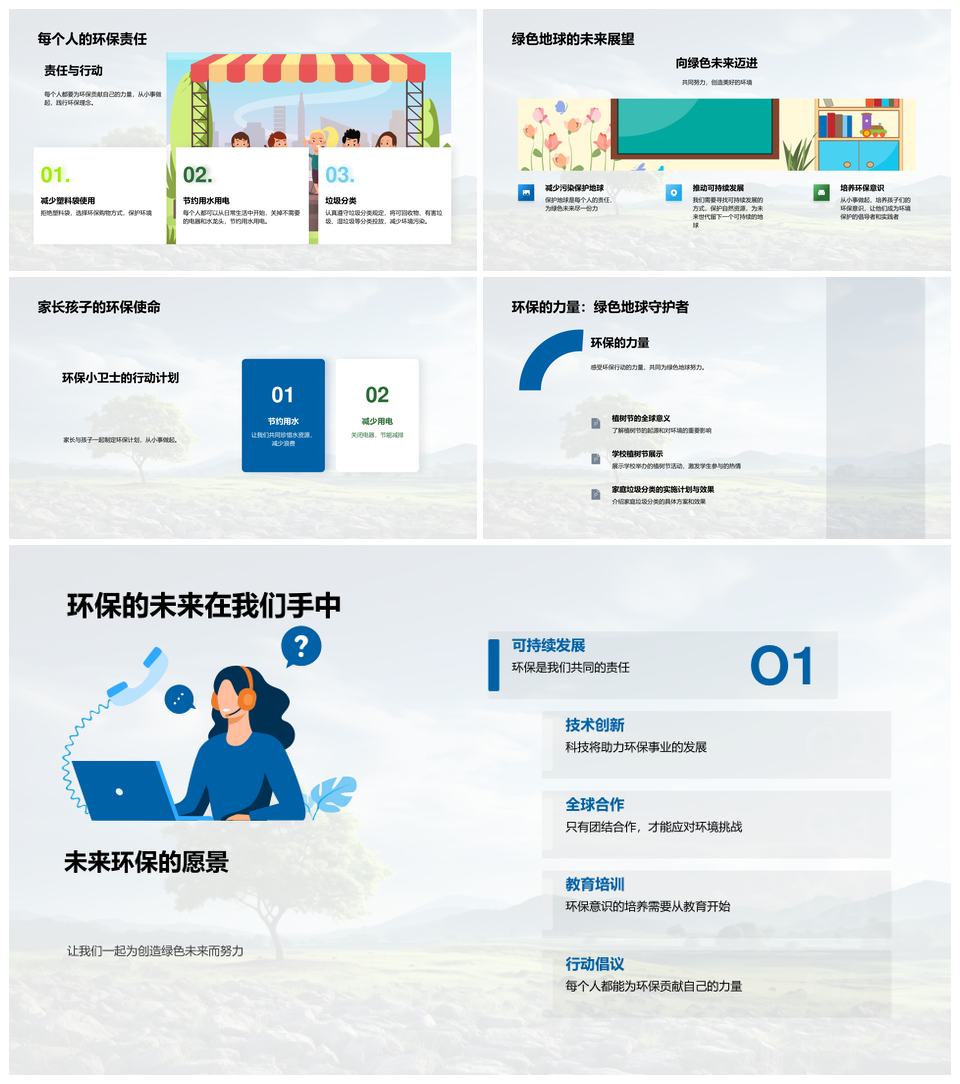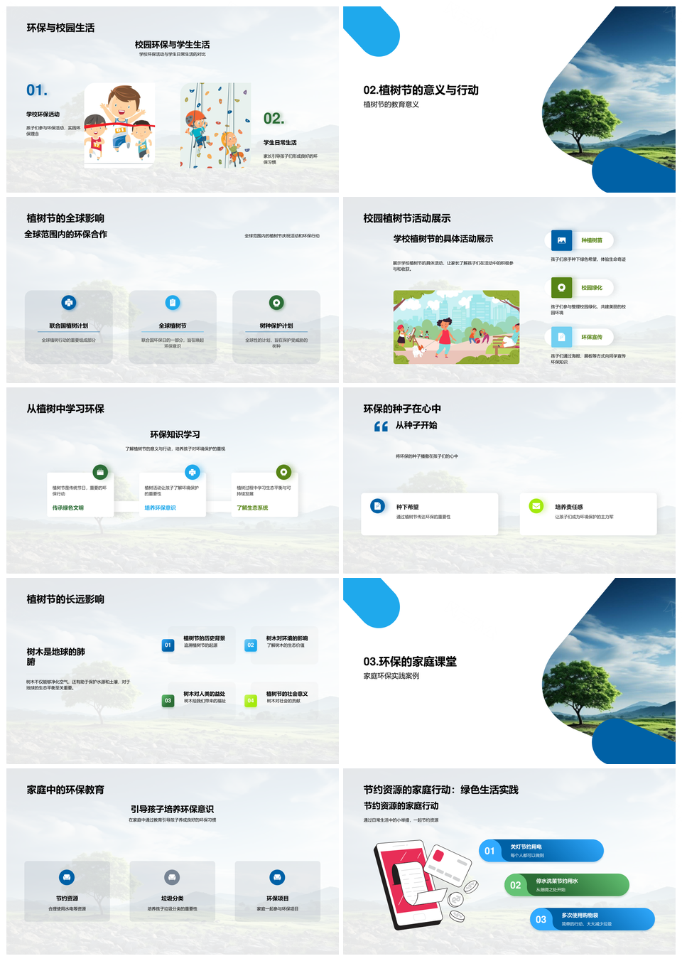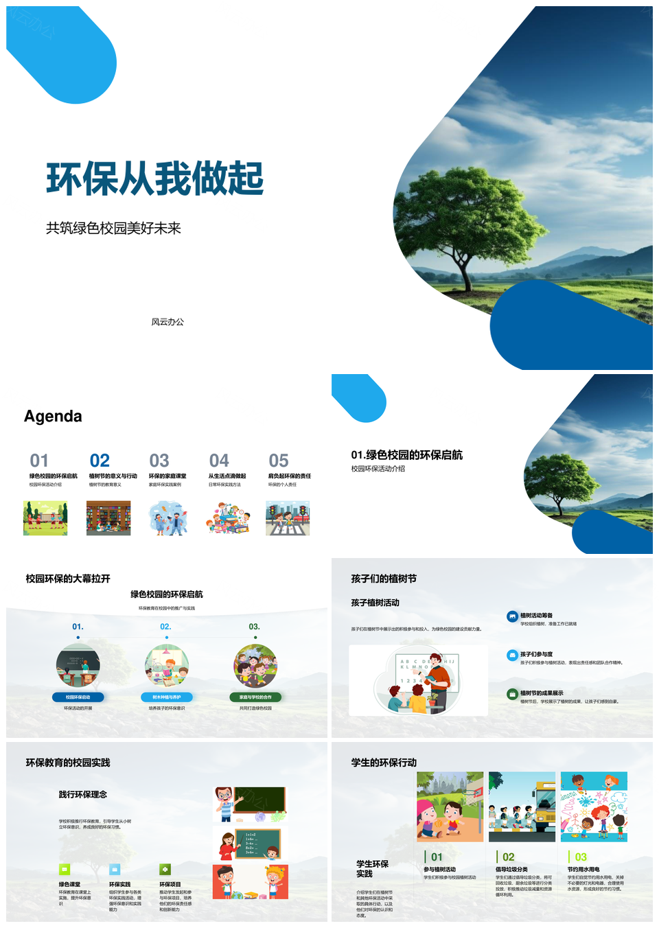 风云办公提供的家校共育植树护绿环保行动节约分类PPT模板,下载格式为pptx,一共33页,作品中文字及图均可以修改和编辑,图片更改请在作品中右键图片并更换,文字修改请直接点击文字进行修改。