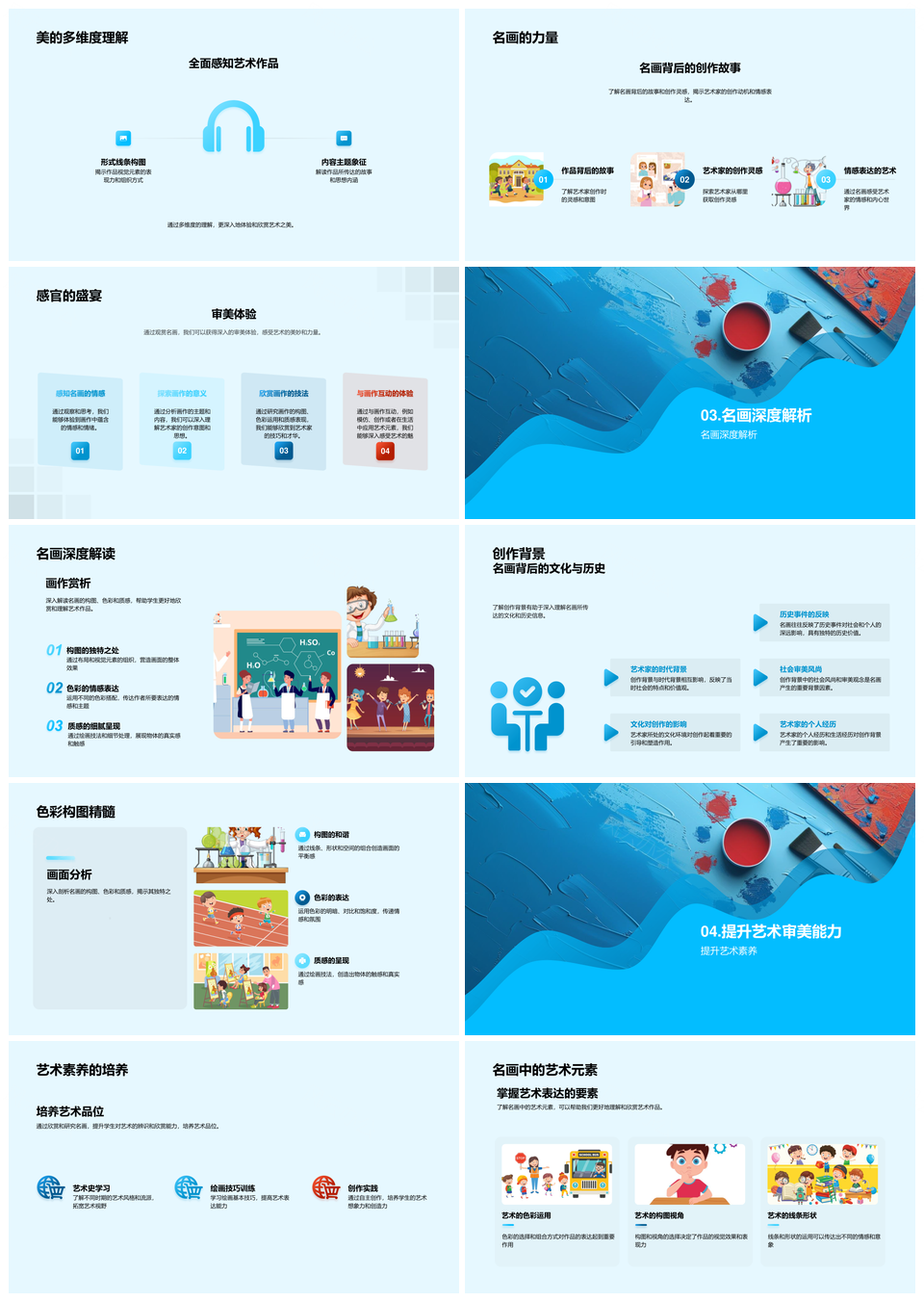 风云办公提供的初中艺术审美教学名画赏析素养培养PPT模板,下载格式为pptx,一共23页,作品中文字及图均可以修改和编辑,图片更改请在作品中右键图片并更换,文字修改请直接点击文字进行修改。