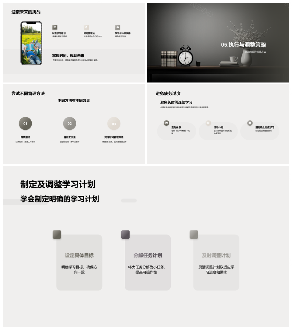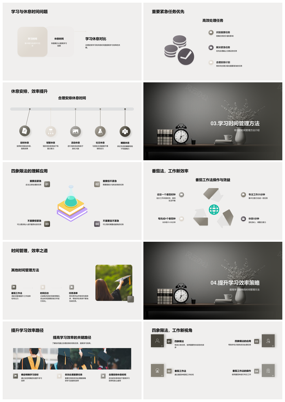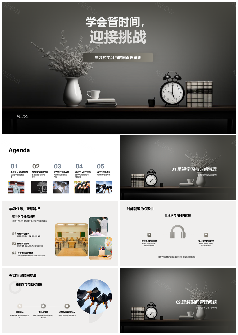 风云办公提供的高一时间管理四象限番茄法提效PPT模板,下载格式为pptx,一共23页,作品中文字及图均可以修改和编辑,图片更改请在作品中右键图片并更换,文字修改请直接点击文字进行修改。