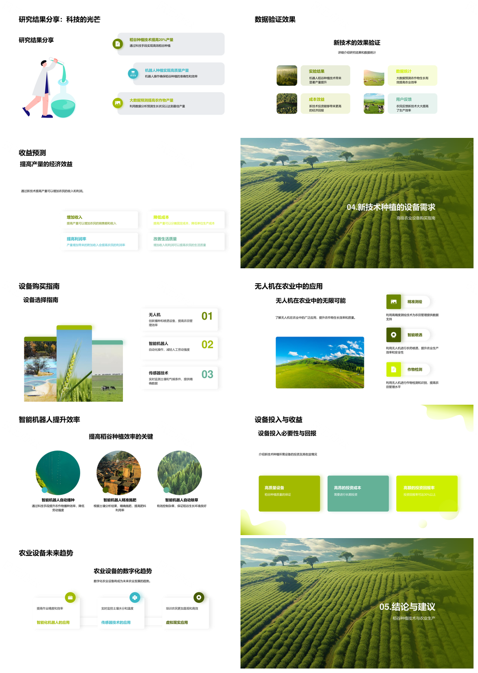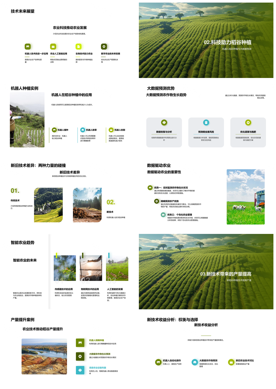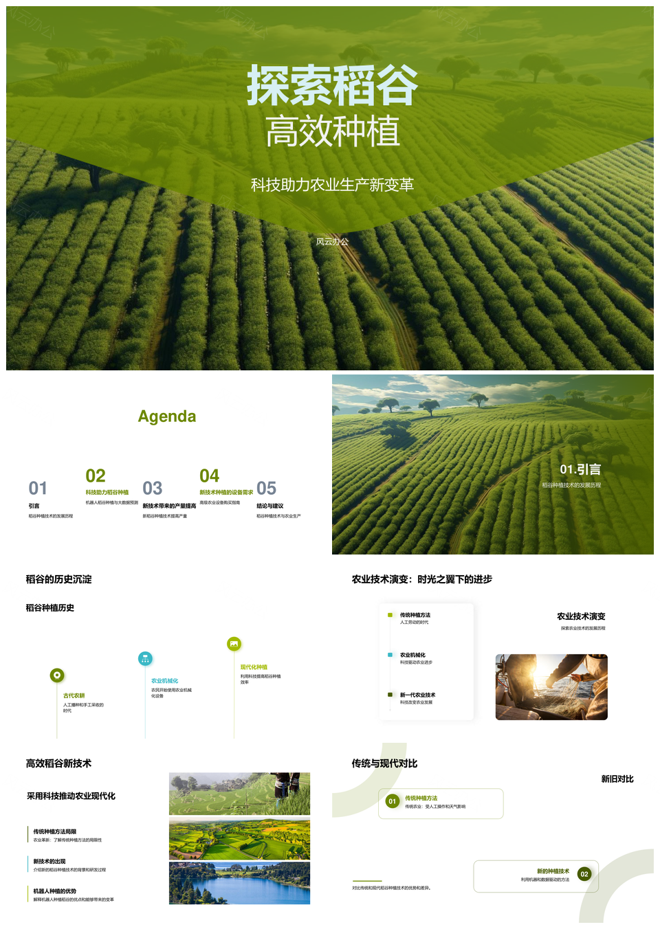 风云办公提供的科技助力稻谷高效种植技术应用PPT模板,下载格式为pptx,一共33页,作品中文字及图均可以修改和编辑,图片更改请在作品中右键图片并更换,文字修改请直接点击文字进行修改。