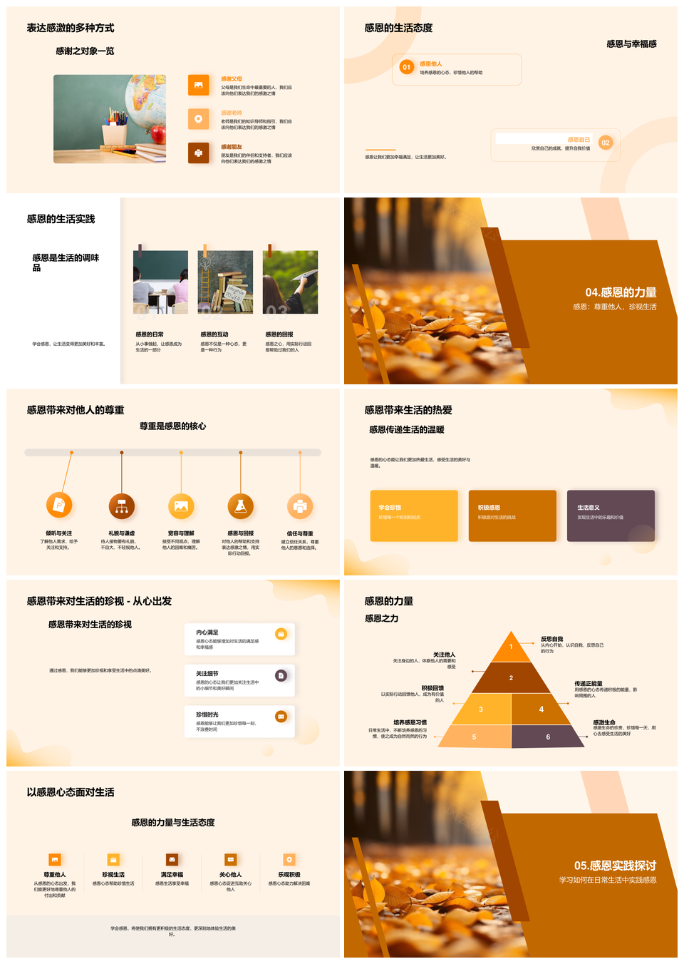 这是一张感恩教育培塑秋叶幸福人生心念PPT模板,包含感恩、教育、培塑、秋叶、幸福人生、心念等主题内容,也可用作感恩教育培塑秋叶、教育培塑秋叶幸福、培塑秋叶幸福人生、秋叶幸福人生心念、感恩教育培塑、教育培塑秋叶、培塑秋叶幸福、秋叶幸福人生、幸福人生心念、感恩教育、教育培塑、培塑秋叶、秋叶幸福、幸福人生、人生心念等PPT场景使用。